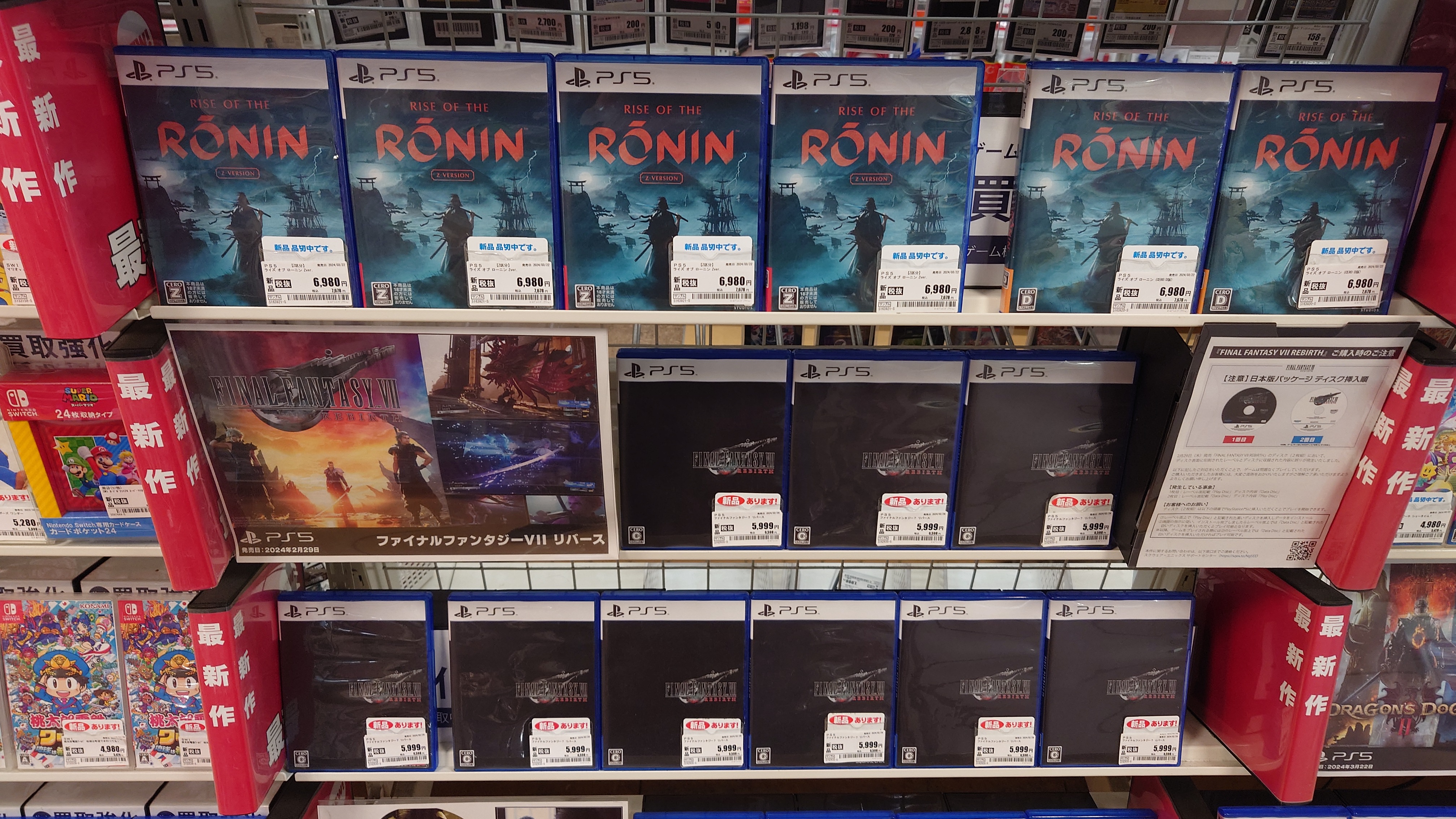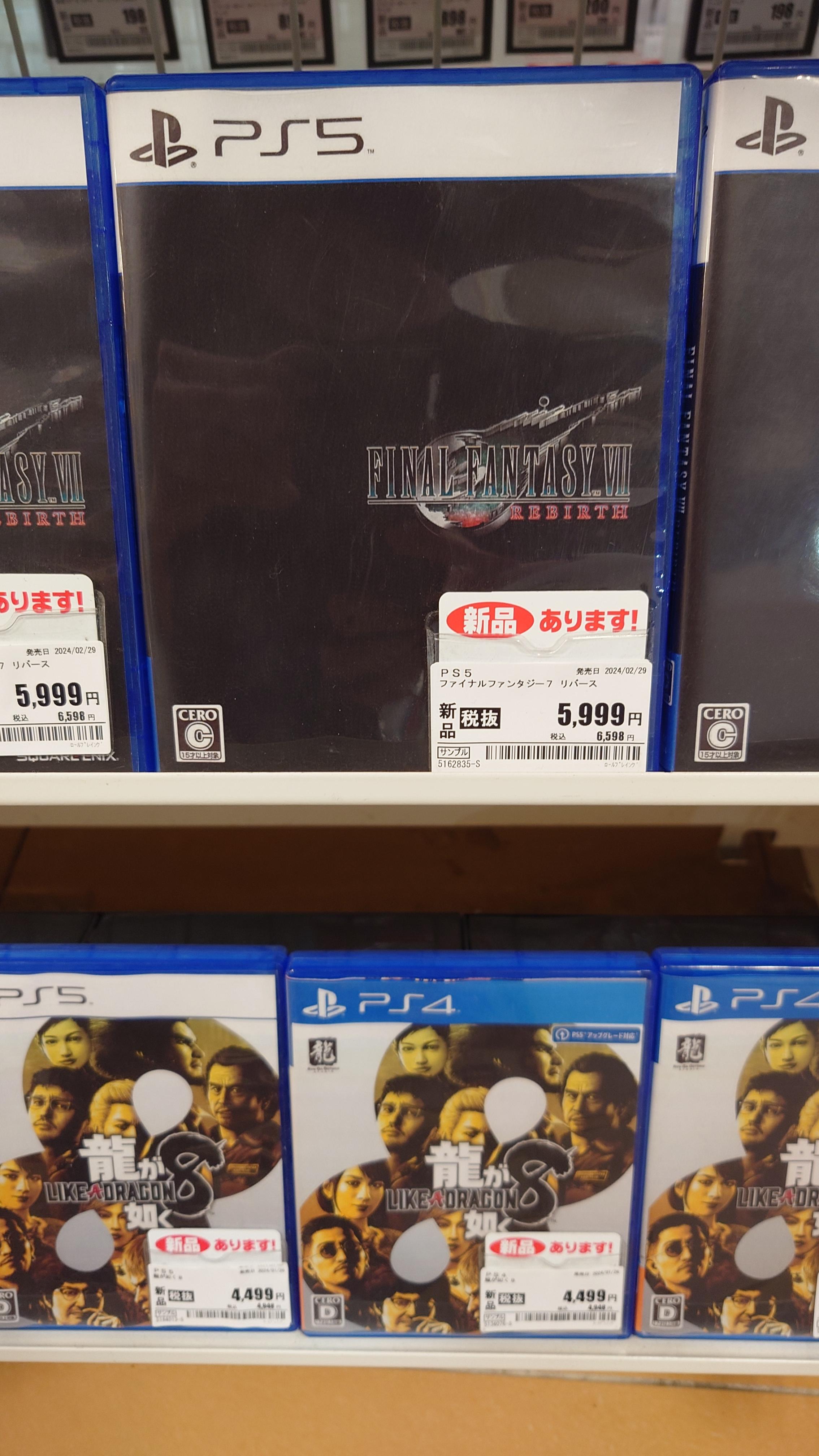발매 후 2개월이 지난 용과 같이 8과 FF7 리버스의 가격을 보면 더욱 두드러진다. 용과 같이 8은 3월 초에 신품 가격이 5천엔대로 내려왔고, 현 시점에서는 4천 9백엔 정도까지다. (사진의 큰 숫자 가격은 세금 미포함이고, 그 아래 작게 써진 가격이 신품 가격이다.) 패키지의 신규 구매 수요가 끝난 것이다.