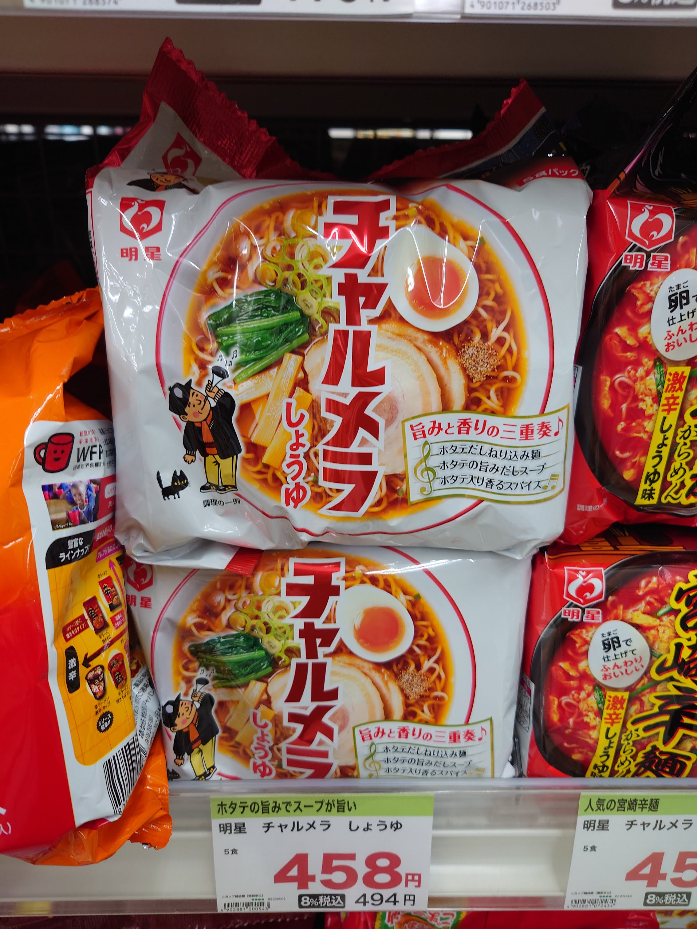 한국에서는 그다지 명성이 높지 않은 명성묘조식품은 마케팅의 닛신과는 달리 라면 맛 그 자체로 승부한다는 느낌이다. 그 또하나의 이유가 바로 이 대표 라면 챠루메라(チャルメラ)