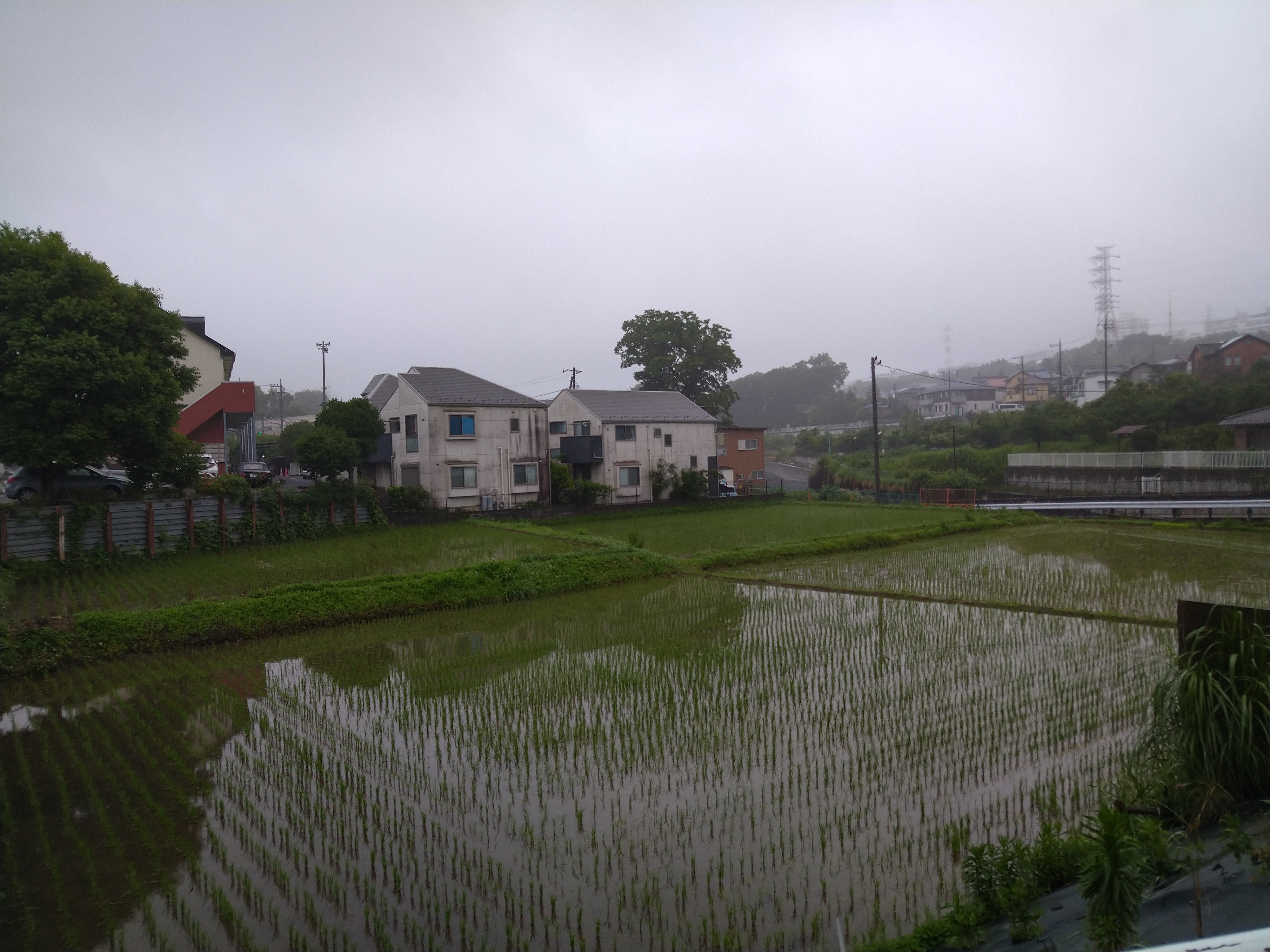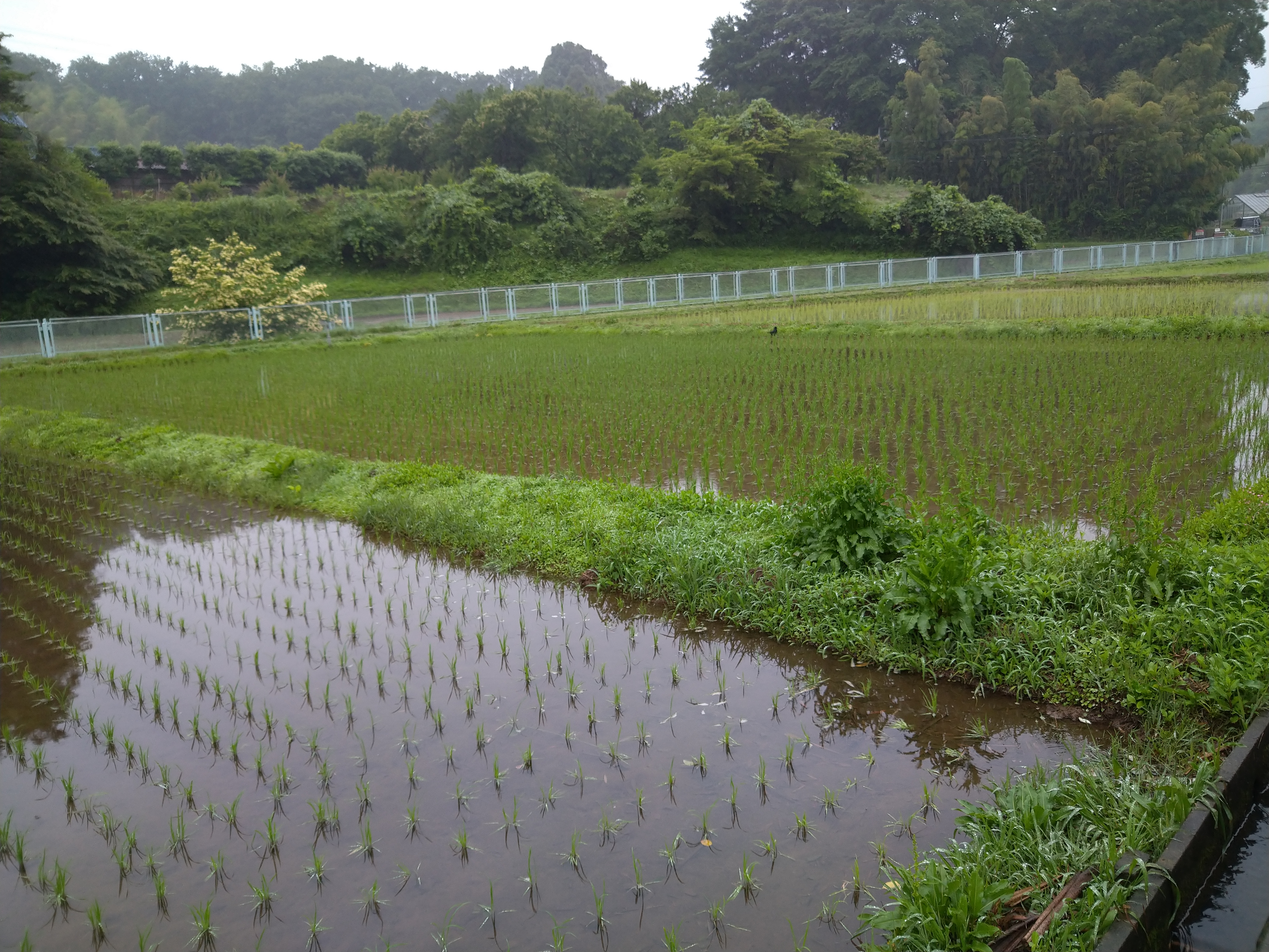 다시 다리로 돌아와서 아래를 내려다 보면 폼포코 너구리들이 쫓겨나기 전의 그 모습 그대로 물을 댄 논밭이 보인다. 너구리들이 쫓겨난 곳은 나가야마(永山) 지구라서 그런지, 나가야마 지구에서는 이런 논을 보기가 어럽다.