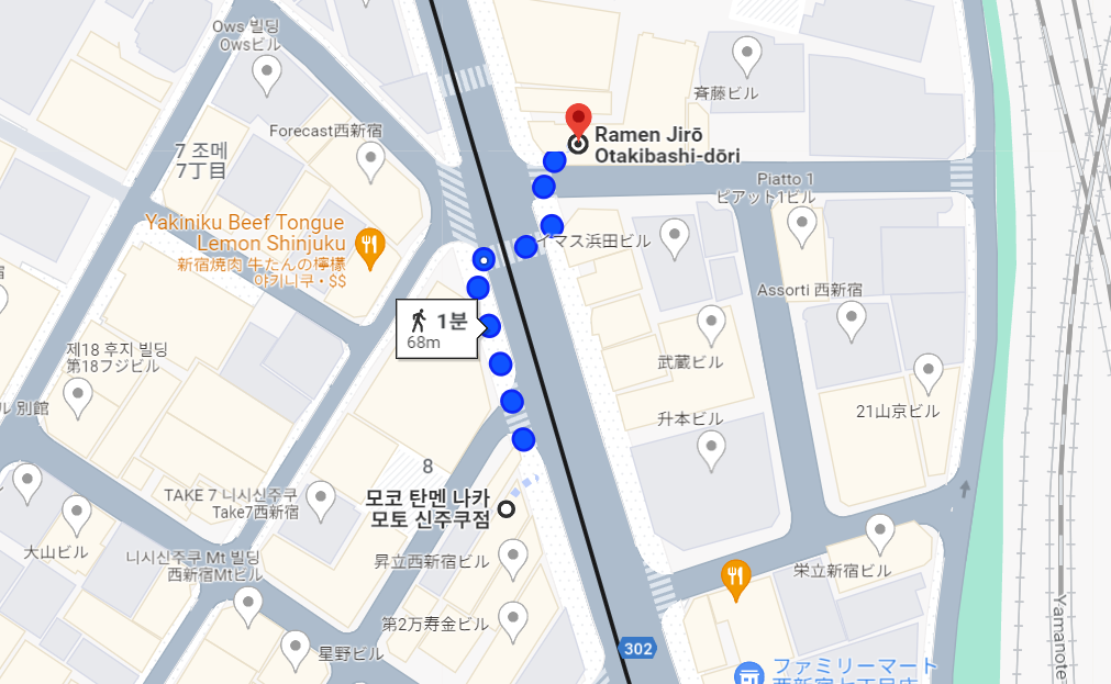 ➡ 포스팅을 쓰는 도중 불이 난 곳은 라멘 지로 가부키쵸점이고 내가 간 곳은 같은 신주쿠의 오타키바시도오리점이라는 것을 알았다.