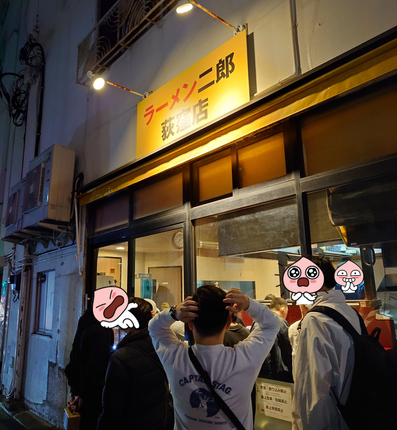 라멘 지로는 아무리 중심가에서 먼 지점을 가도 줄이 너무 길다. 그 근방의 사람들이 다 모이는지 되려 더 줄이 더 길다. 도쿄에 살면서 여러 라멘 지로를 찾아갔으나 평일 3시 이럴 때에도 20명 이상 줄 서 있는 경우가 많아서 전부 실패했다. 평소에도 줄을 서느니 그냥 다른 걸 먹는 편이라 20명 이상의 줄은 그냥 논외가 되었다.