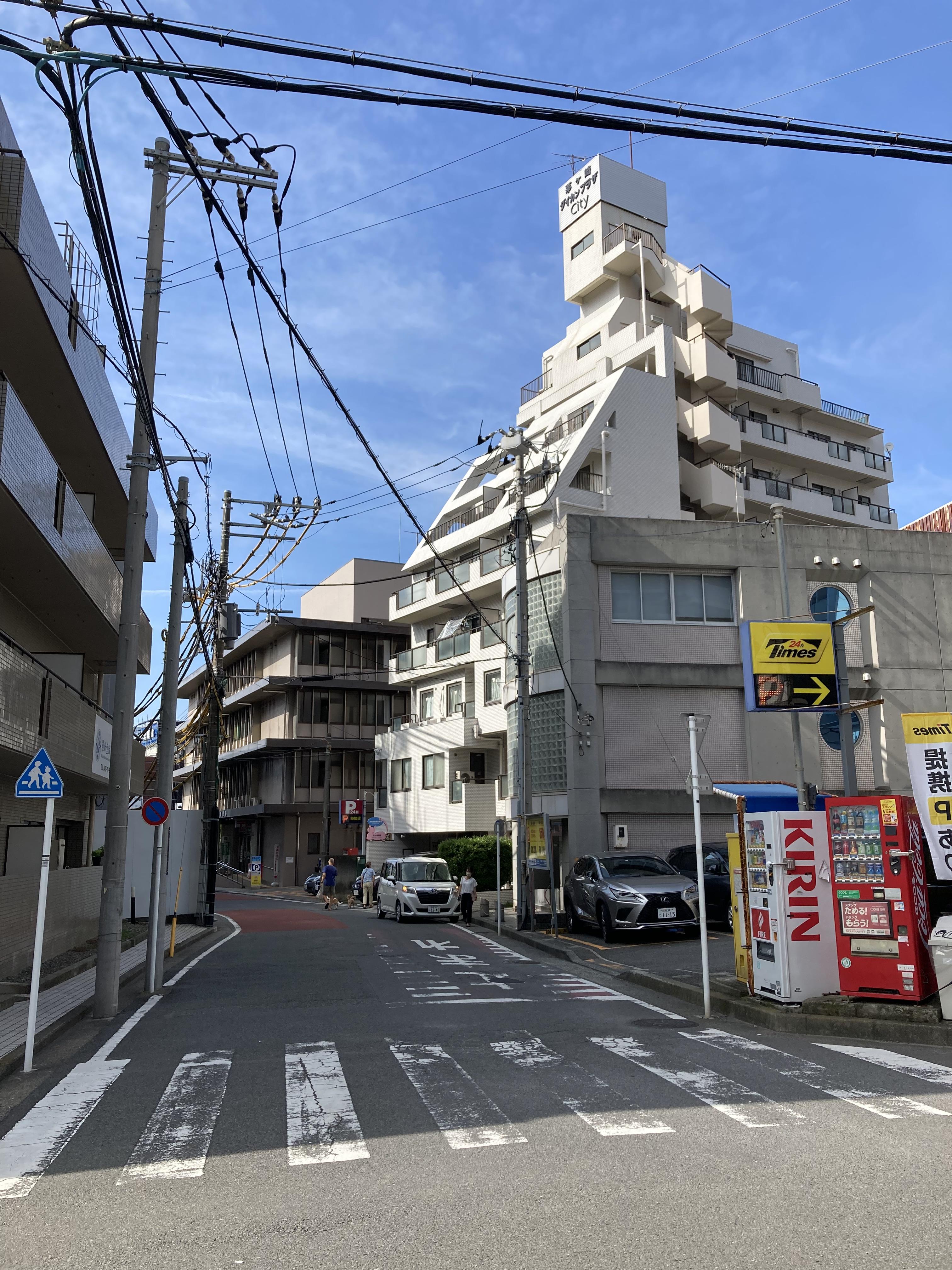80년대에 지은 맨션 중에는 이렇게 경사진 디자인이 종종 있는데, 그 때 유행이었나 보다.