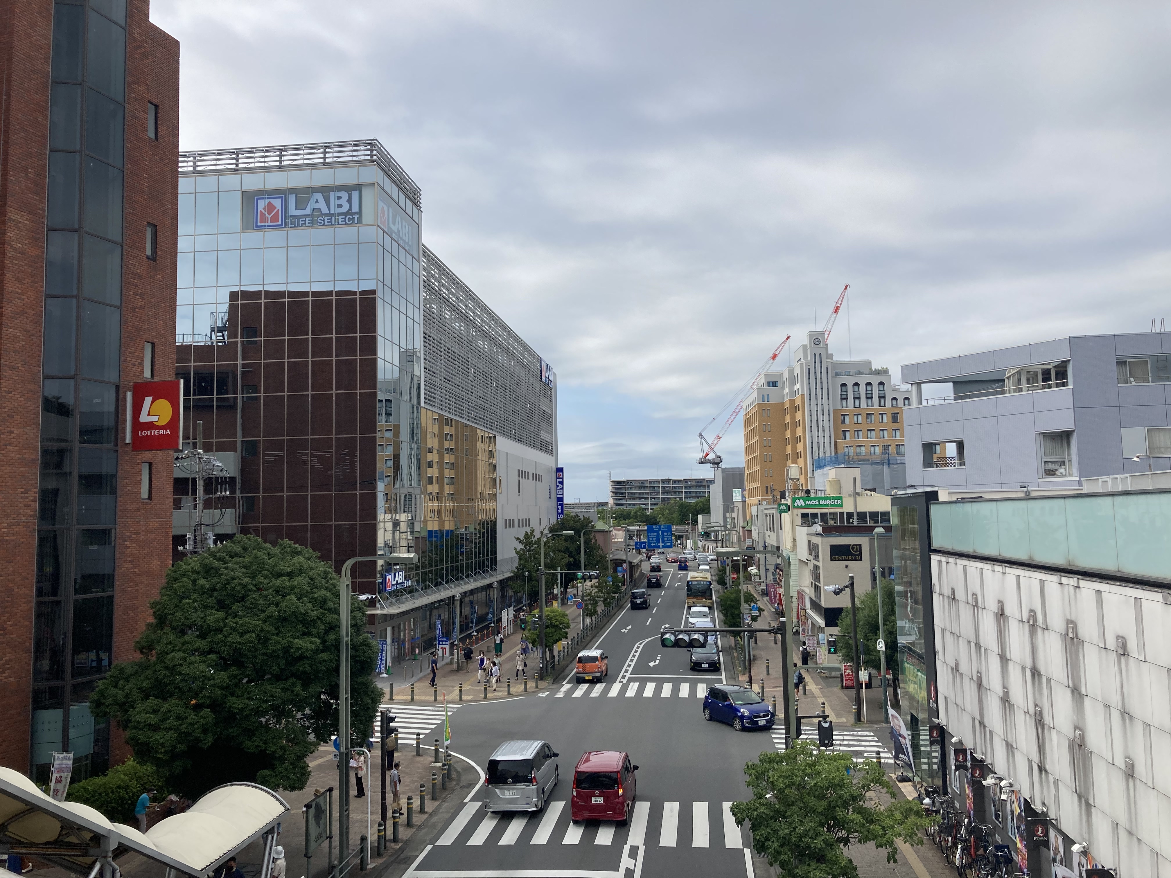 갈색 벽돌이 인상적인 이토요카도. 그 뒤에는 야마다 전기 건물이 보인다.