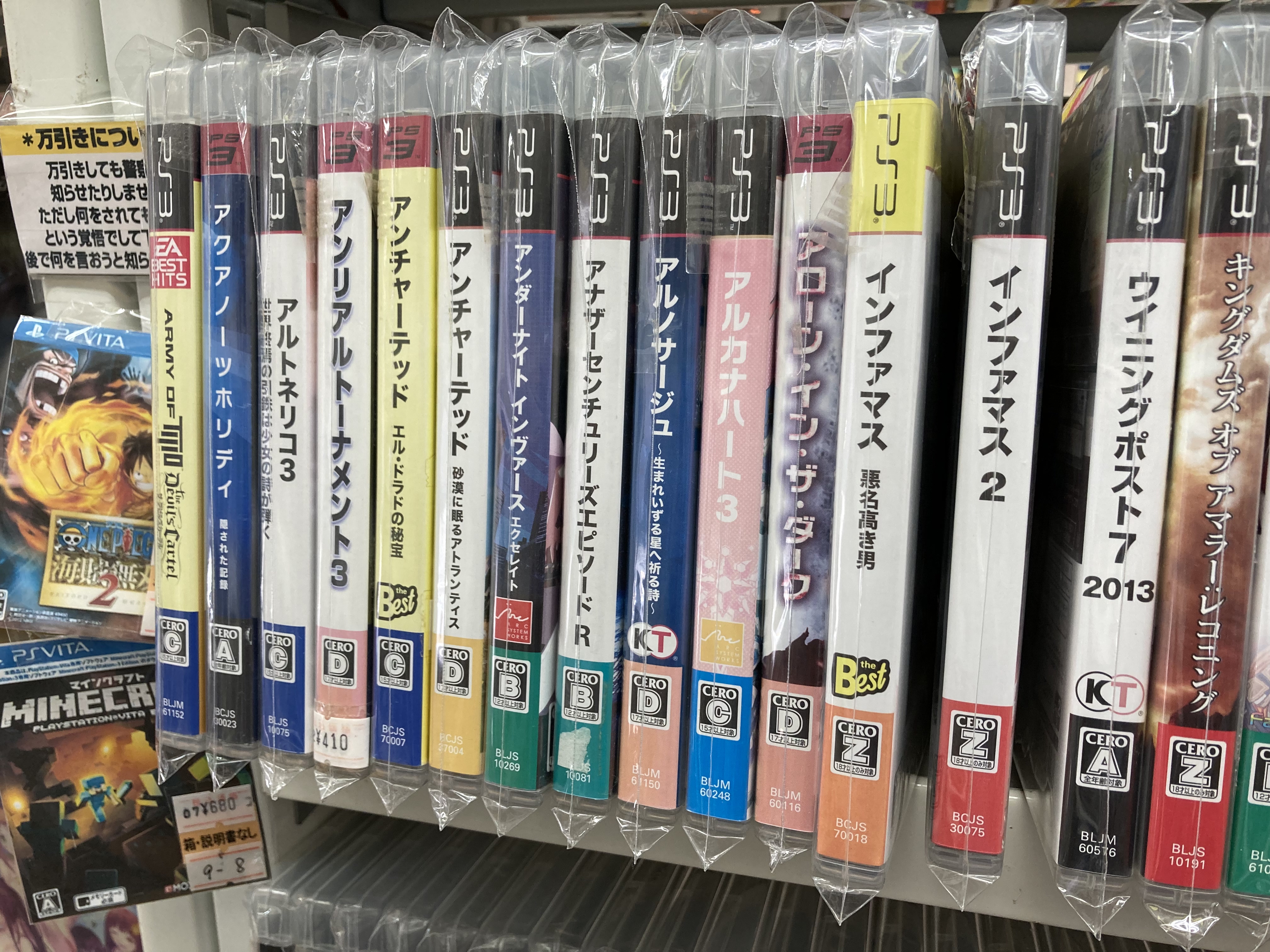 여기 오기 전에 일 때문에 인퍼머스 1과 2를 그렇게 찾아도 없어서 결국 메르카리에서 질렀었는데.. 다른 게임들도 대히트작 혹은 나름의 인상을 남긴 게임들이라, 여기 주인 분의 큐레이팅 공력이 상당하다는 것을 느낄 수 있다.