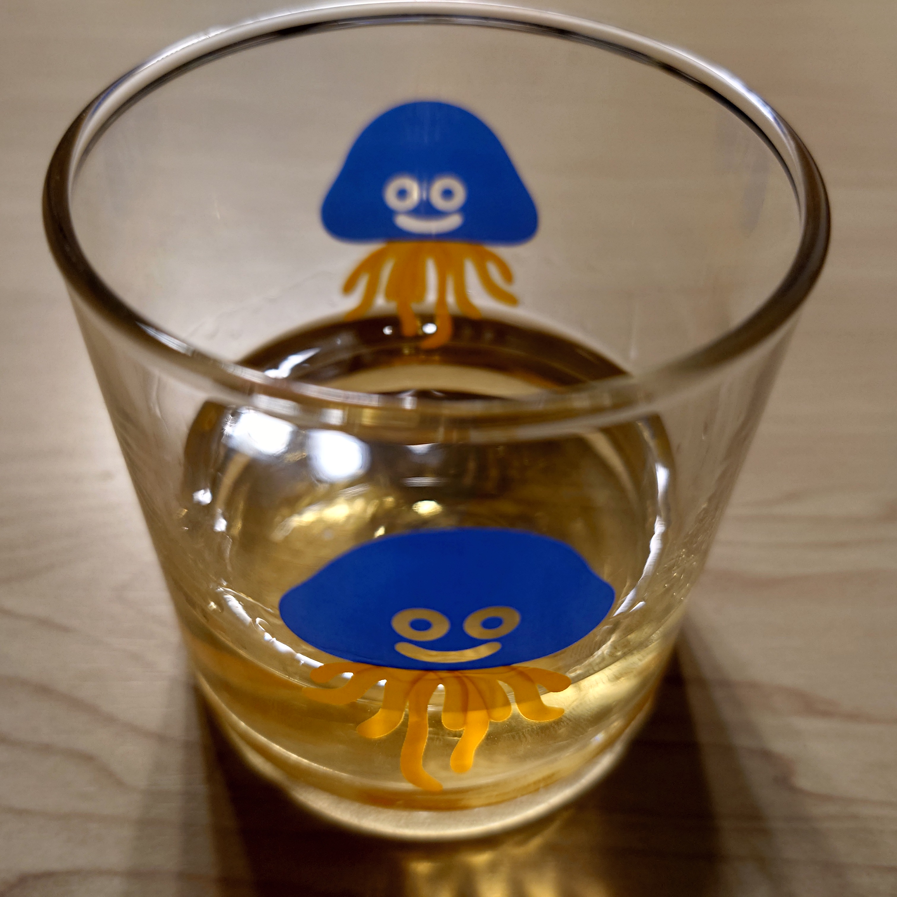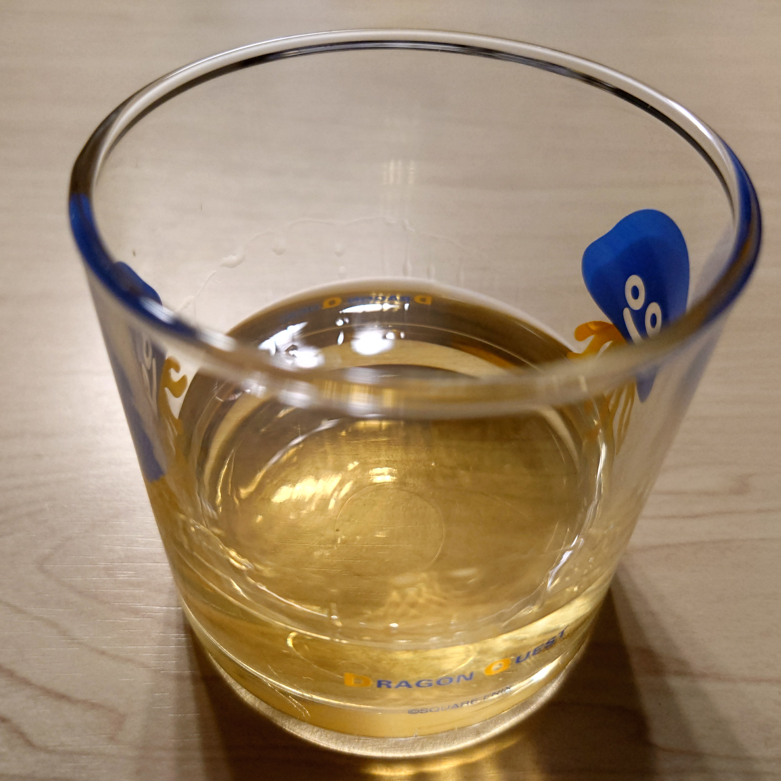 위스키 마실 때 애용하는 커비 잔은 무늬때문에 술이 잘 안 보이니 어제 3편 리메이크를 발표한 드래곤 퀘스트 잔으로..
