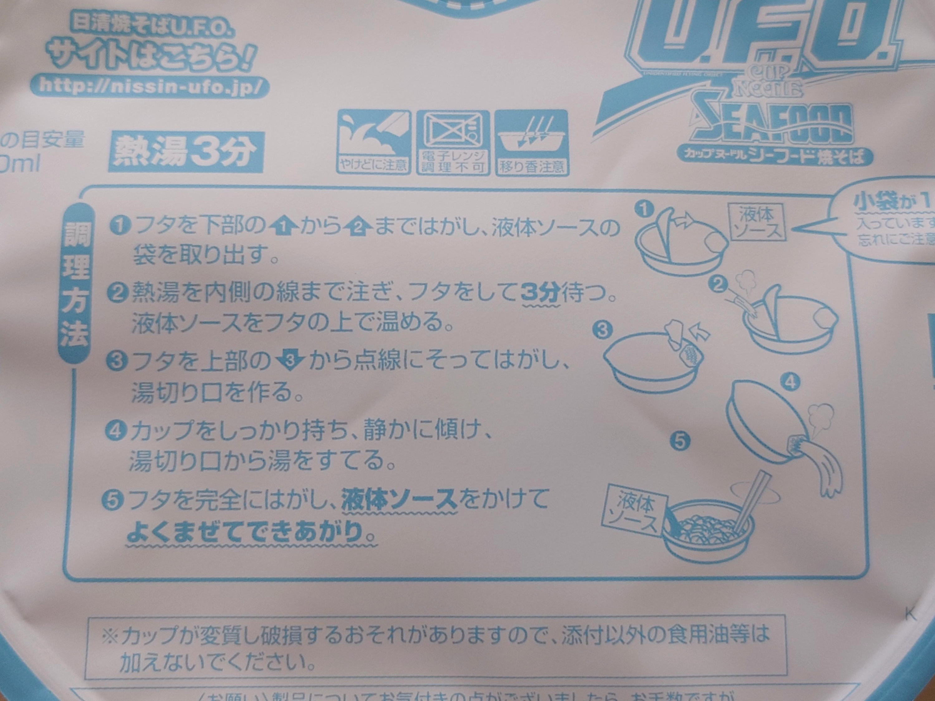 사 온 날 점심으로 U.F.O 야키소바부터 시작. 푸른색의 강렬한 폰트가 닛폰햄 파이터즈 로고라도 되는 것 같다.