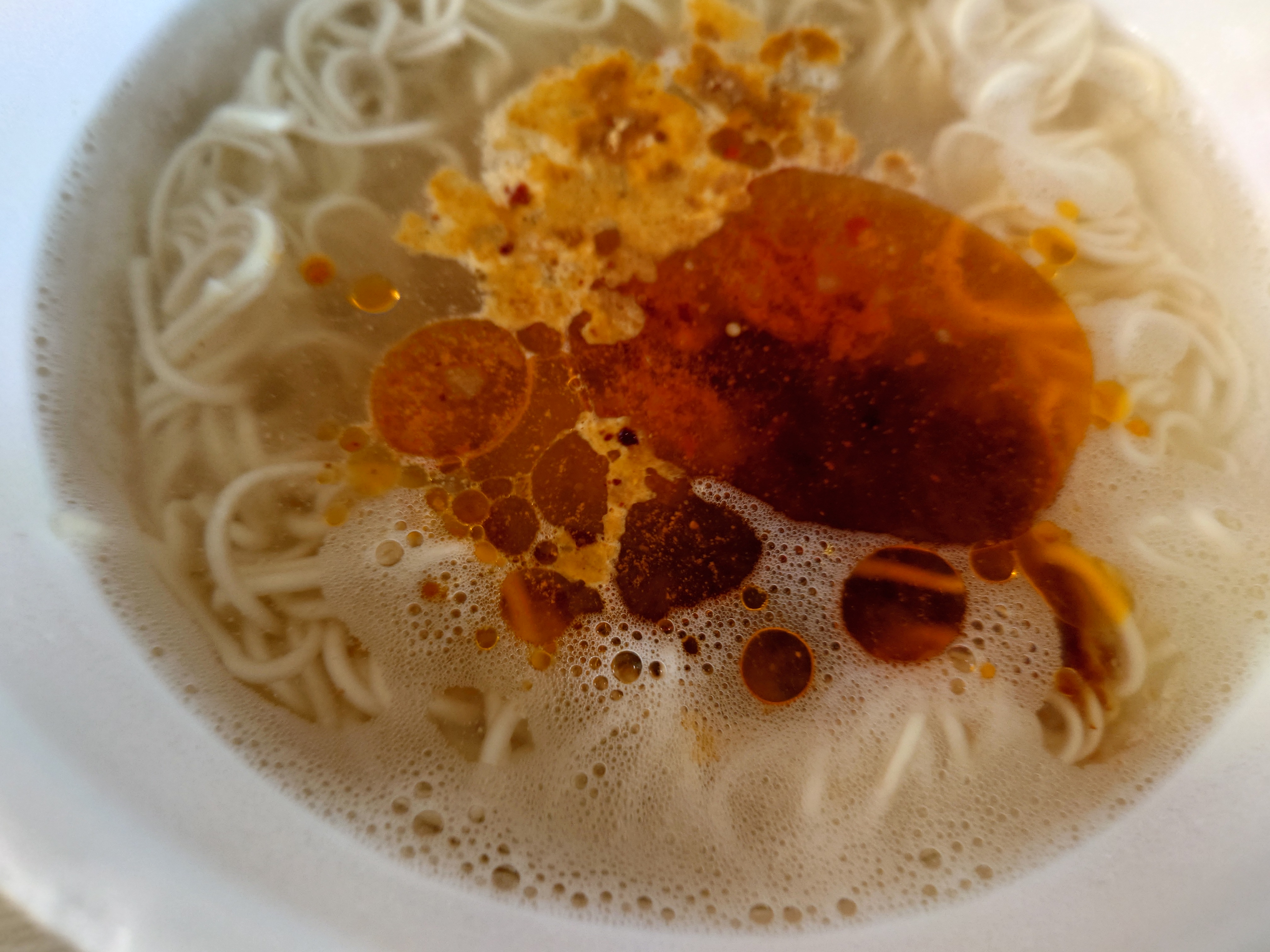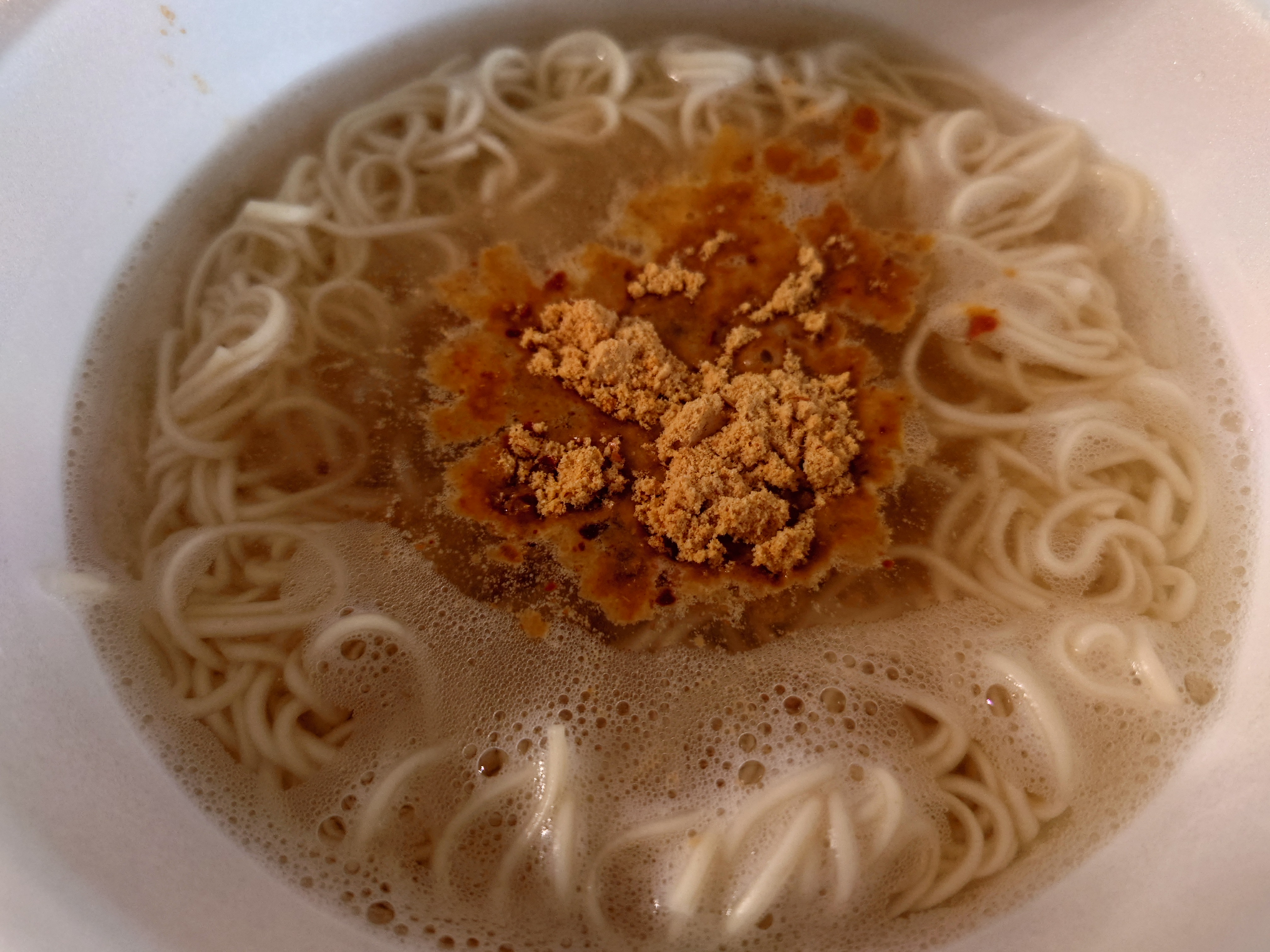 분말스프 투하. 비전 소스로 매운맛을 낼 거라는 예상과 달리 분말스프에서부터 매운 냄새가 났다.