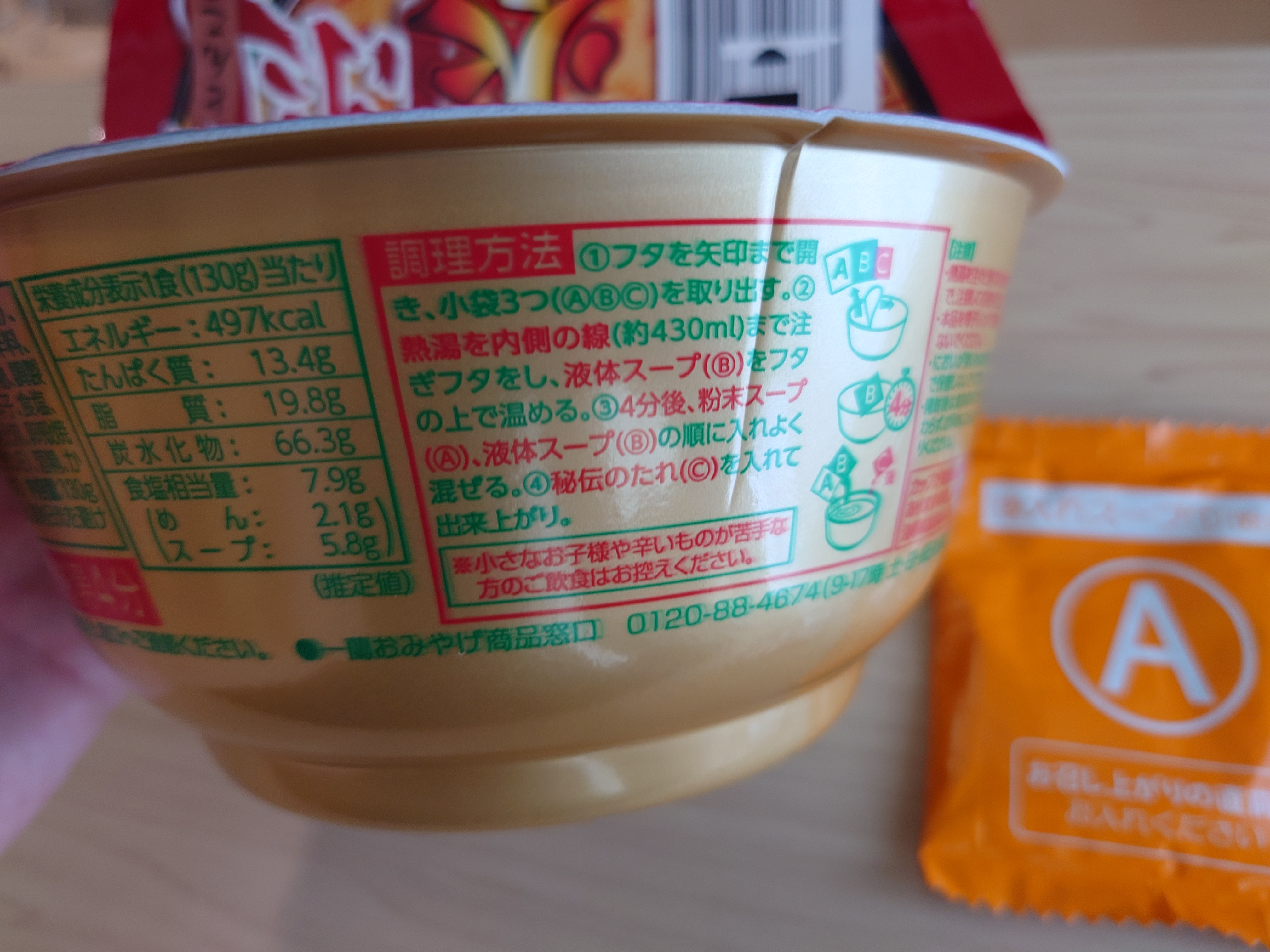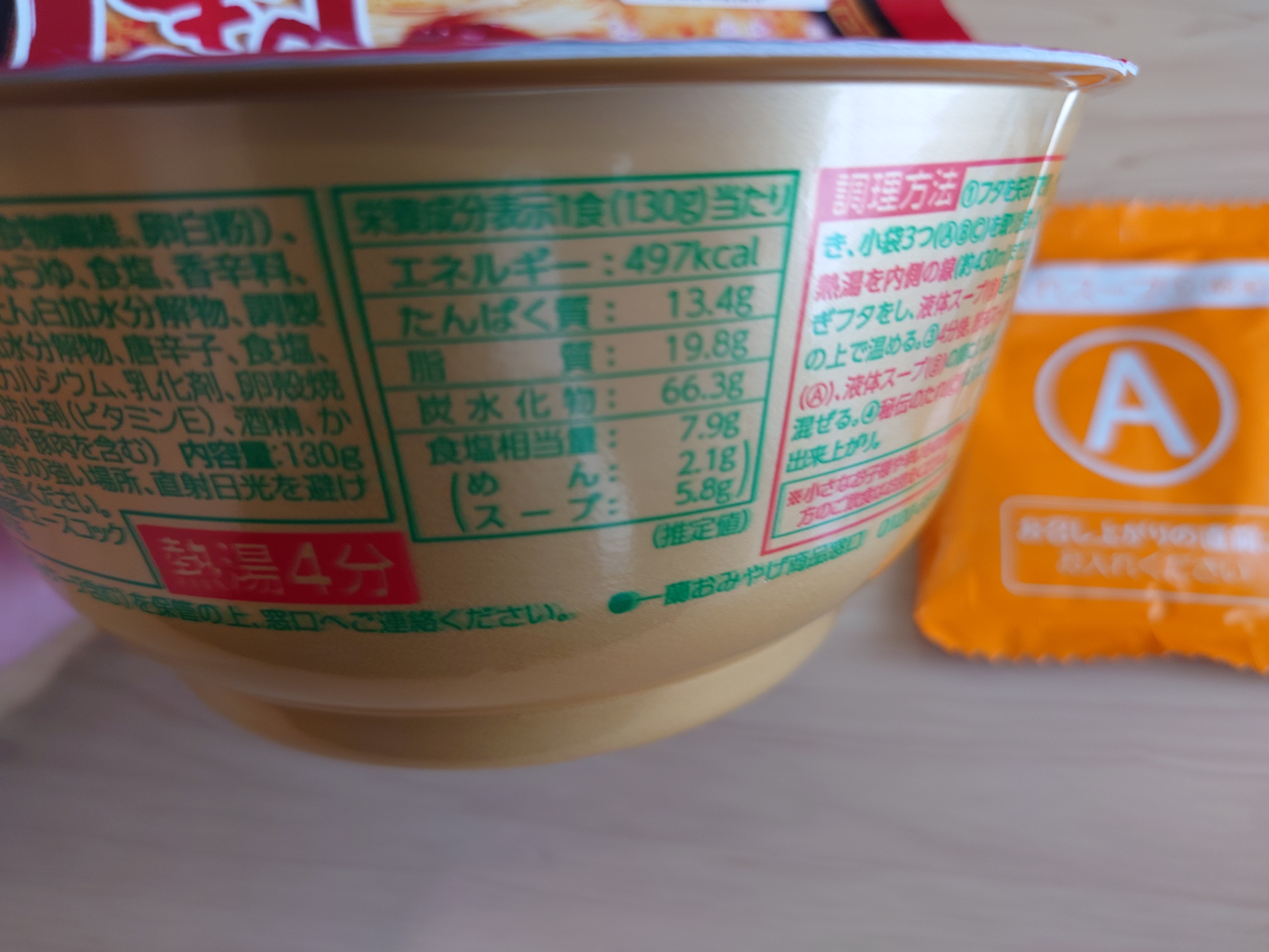 조리법도 동일하게 심플. 끓는 물을 붓고 B의 액체스프를 올려놓고 데운 후, 4분 후 분말스프와 액체스프를 넣고 섞어주면 된다. 떨어뜨리지도 않았는데 왜인지 용기 한 쪽이 찌그러져 있었다.
