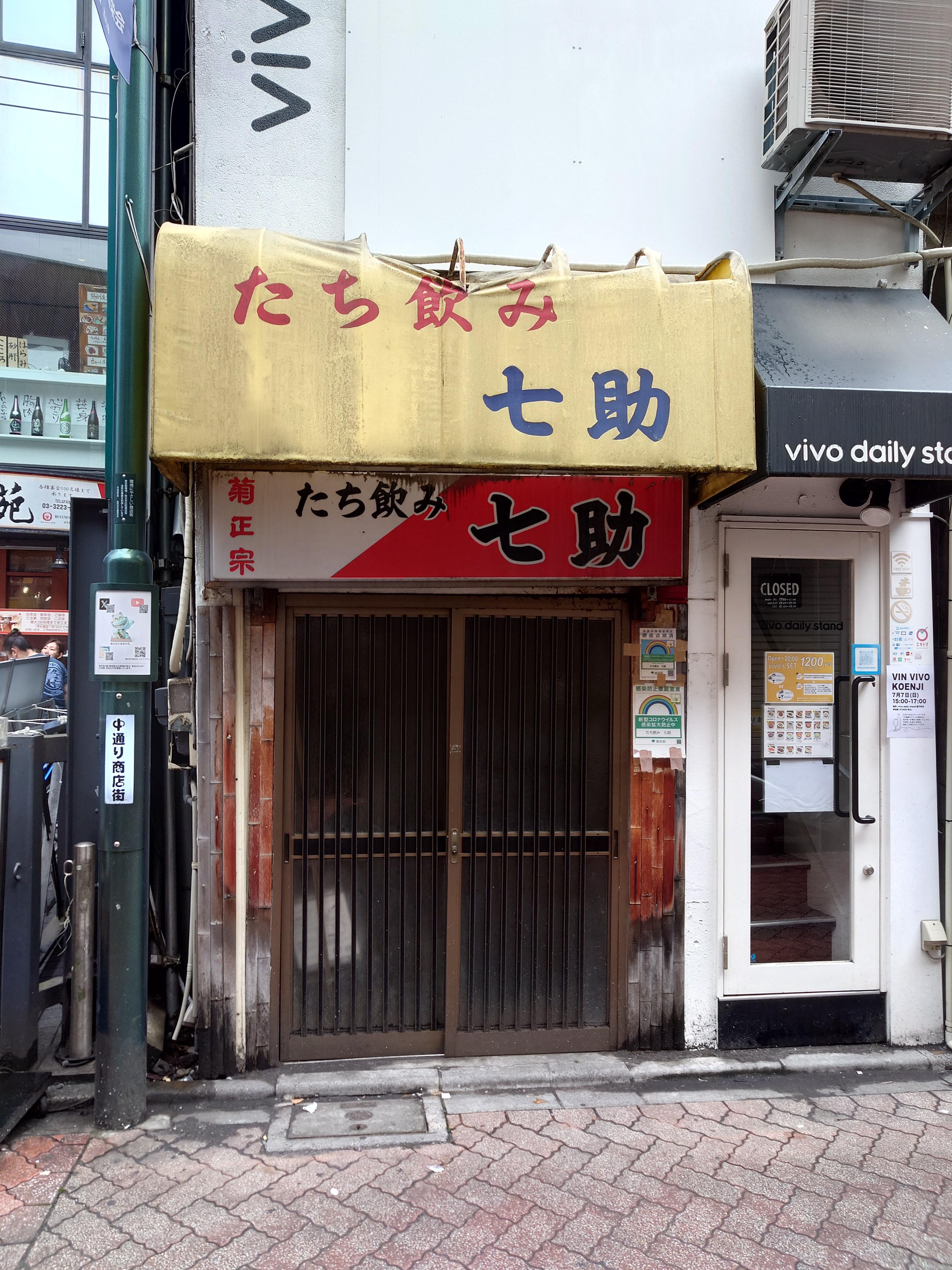 다시 역 북쪽출구로 나오는 길목에 있는 타치노미 나나스케(七助). 이런 타치노미는 정말 비좁고 요리는 간단한 것만 있어서 정말 술만 마시게 된다. 그래서 매우 좋아한다....언젠간 가고 말거야.