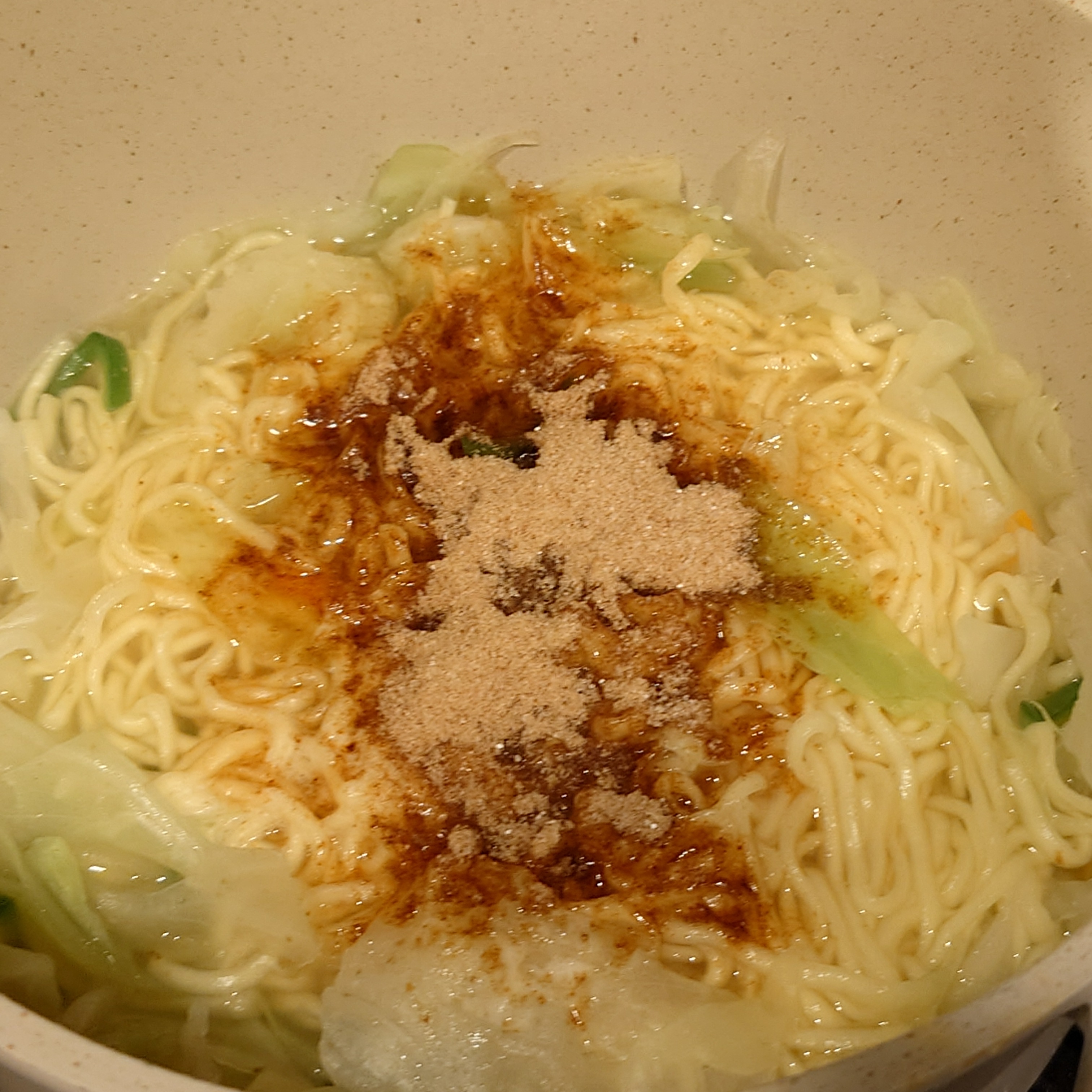 4분의 기다림을 충분히 만족시켜주는 찰진 면발. 건면인데도 이렇게 찰랑찰랑할 수 있는 거였다. 챠루메라의 그것보다 확실히 조금 더 고급진 느낌. 식감도 매우 찰져서 과연 제품력의 묘조라고 다시한 번 느꼈다.
