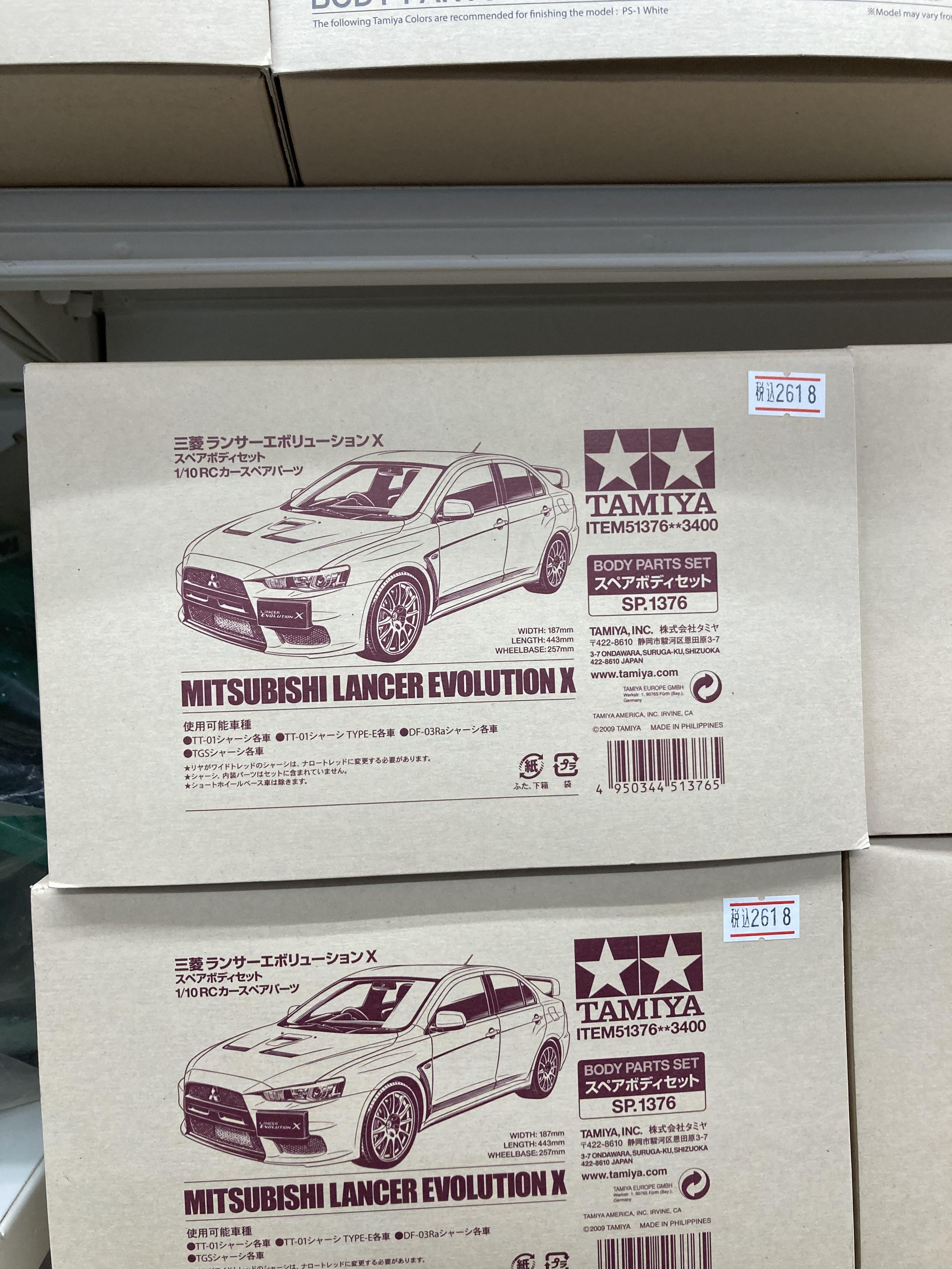 미츠비시 랜서 에볼루션(三菱ランサーエボリューション, 일명 란에보) 보디도 있었다! TT-01 샷시와 호환되므로 란치아 델타의 보디에 바꾸어 낄 수 있는데 이 날 대체 왜 안 산 거지!! 아마도 스티커질에 너무 지쳐서 이걸 또 언제.. 하는 마음이었던 것 같다.