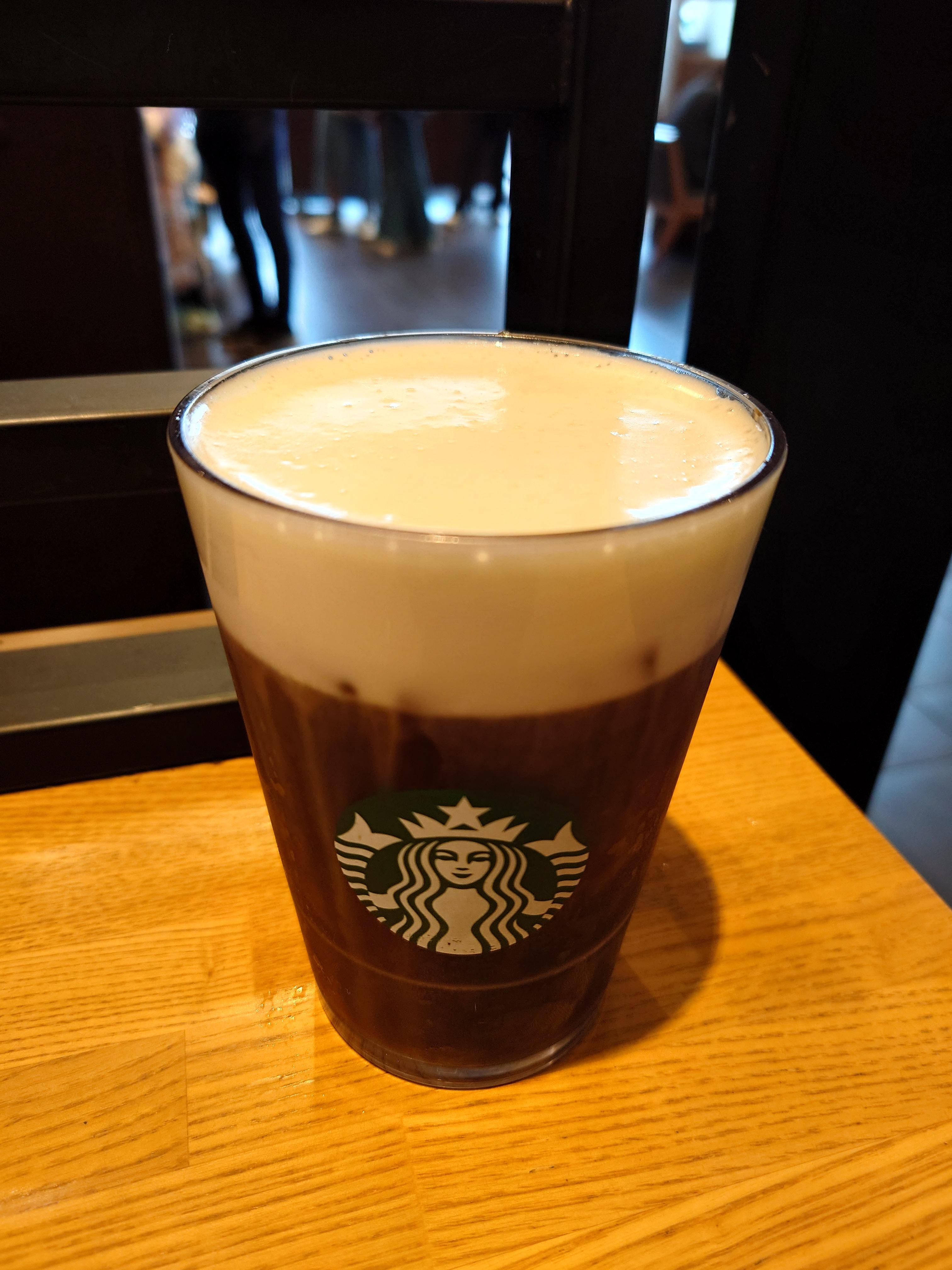 우려대로(?) 다음날 또 아침 공복에 2회차를 하러 갔다. 이번에는 종이컵 말고 투명 텀블러에 달라고 확실히 주문. 보글보글 골든폼의 아지랑이가 아래로 내려가는 걸 한 참 감상한 뒤 마시기 시작했다.