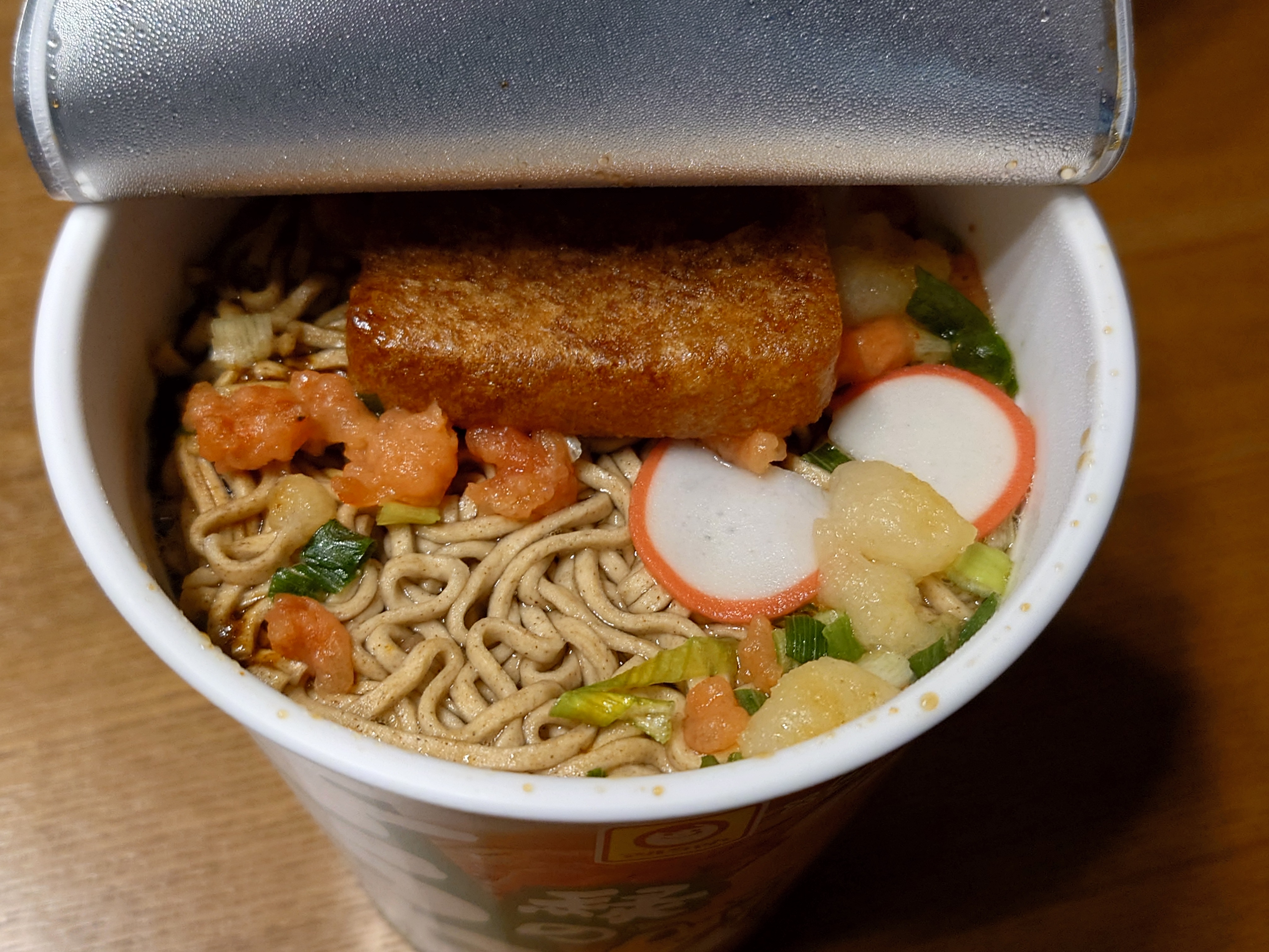 5분이 되었으므로 키츠네 소바? 우동? 을 개봉했다.