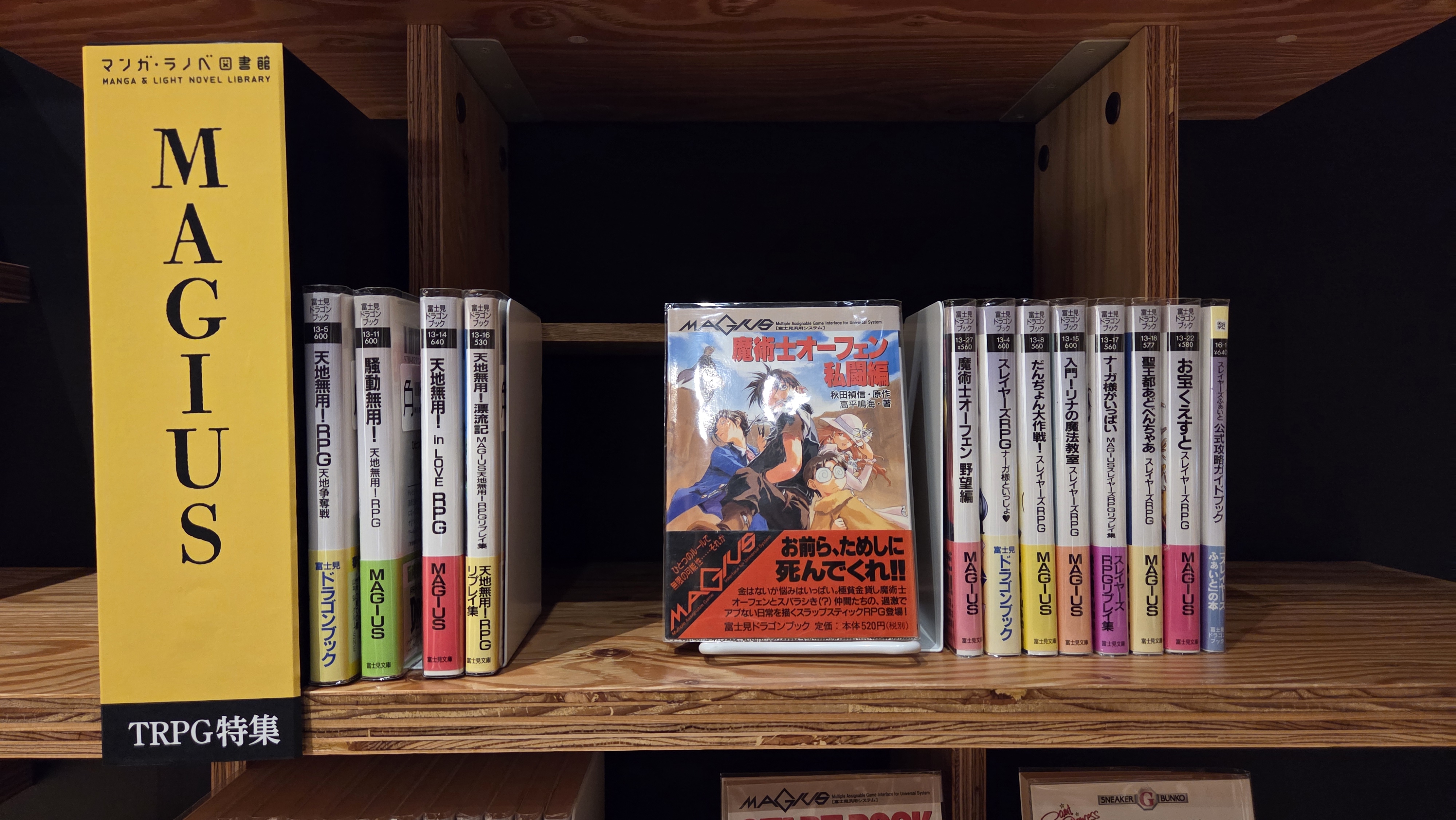 만화/라이트노벨 도서관은 1층이라고 들었는데, 여기에 TRPG특집 서가가 마련되어 있었다. 마술사 오펜, 슬레이어즈의 TRPG북. 원래 이런 TRPG 북으로 나왔다고 들은 것 같기도 한데, 기억이 가물가물하다. 왼쪽에는 의외로 가장 많은 천지무용의 RPG 시리즈.