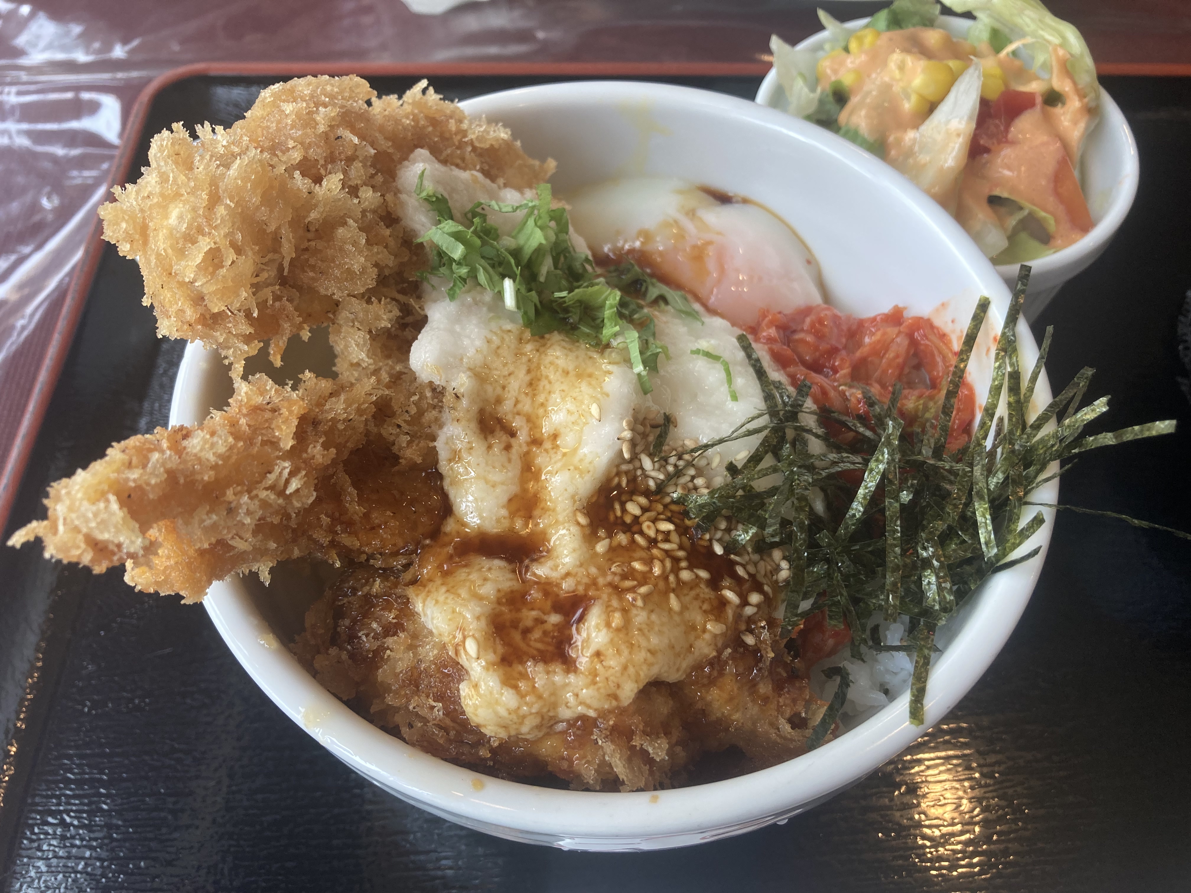 예상을 뒤엎고 하얀 것은 곱게 갈은 마였다. 거기에 김치가 곁들여진 -_-; 마의 점액 느낌을 워낙 싫어해서 치워가며 겨우 먹었다. 하지만 돈까스의 품질은 일본에서 먹은 것 중 최고급이었다. 나중에 다시 온다면 돈까스로..