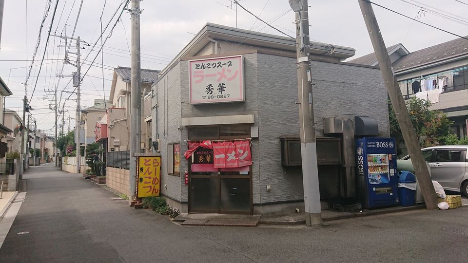 라멘 슈카(秀華)는 신주쿠에서 케이오센(京王線)을 타고 시바사키(柴咲)역에서 내려, 5분 정도 걸어가면 있다.