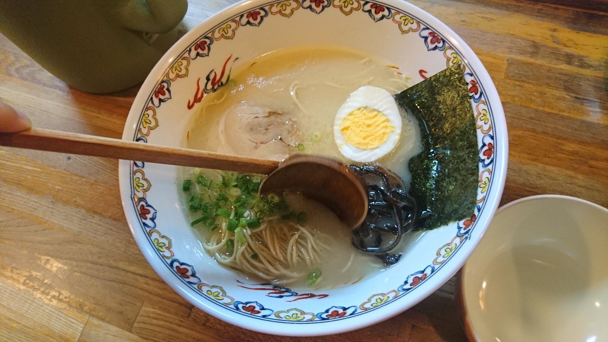 위의 사진들은 전부 갈 때마다 직접 찍은 것인데(많이도 갔다..), 참고삼아 다른 하카타 라멘가게 사진. 하카타 라멘 하면 보통은 이런 느낌이 많다. 이것도 이것대로 맛있지만..
