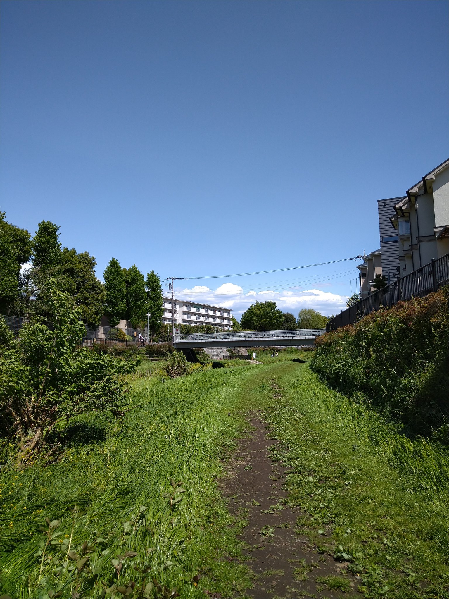 조금만 걸어내려가면 노가와(野川)와 오래된 단지 풍경을 볼 수 있다.