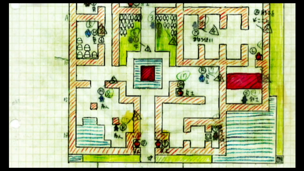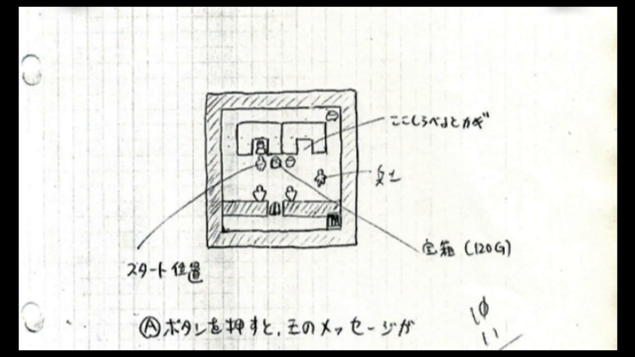 여기를 조사하면 열쇠 획득, 보물상자 등의 위치도 쓰여있다. 말인 즉슨, 모든 맵에 대해 이렇게 상세하게 기획을 해 놓았다는 뜻이 된다. 툴이 있는 것이 아니니 이렇게 하지 않으면 구현 자체가 불가능했을 테니까.