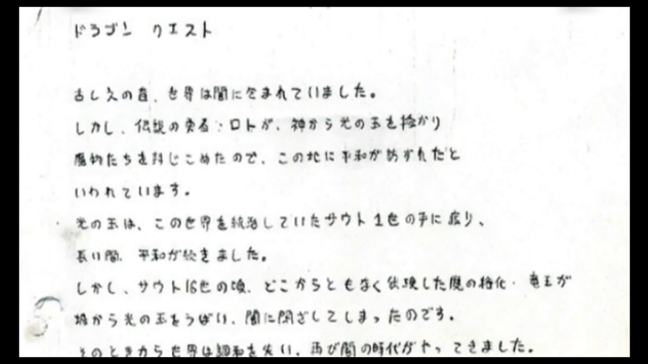 드래곤 퀘스트 기획서의 첫 페이지. 전설은 이 글귀로부터 시작되었다.