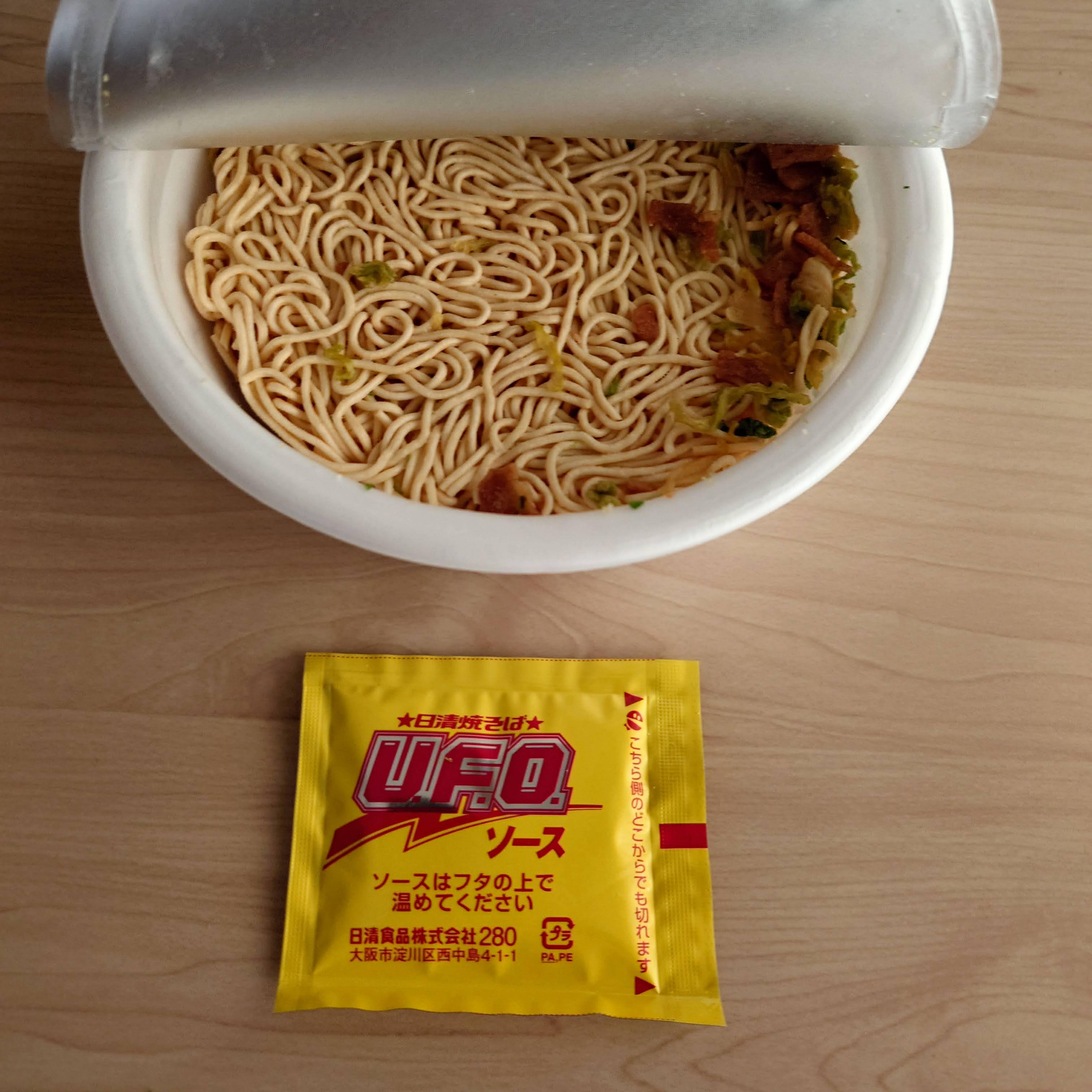 비교검증차 샀던 야키소바 U.F.O.를 다음날 먹어봤다. 이번에 알았는데 UFO야키소바 아니고 야키소바 U.F.O.였다.