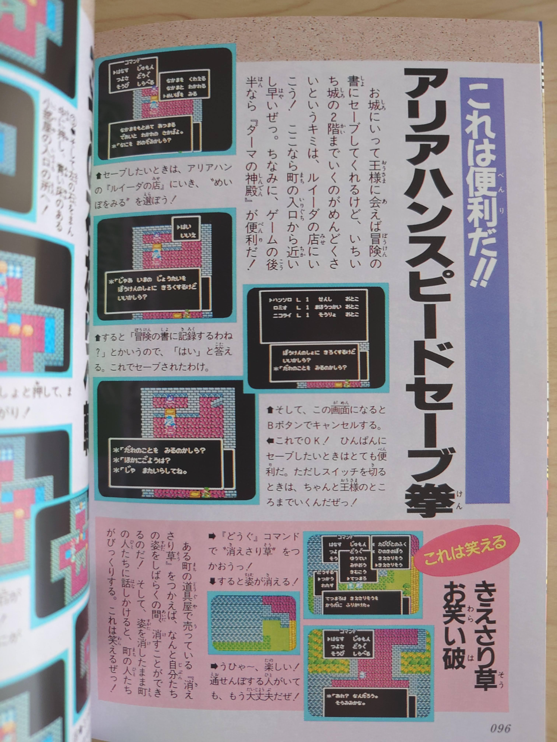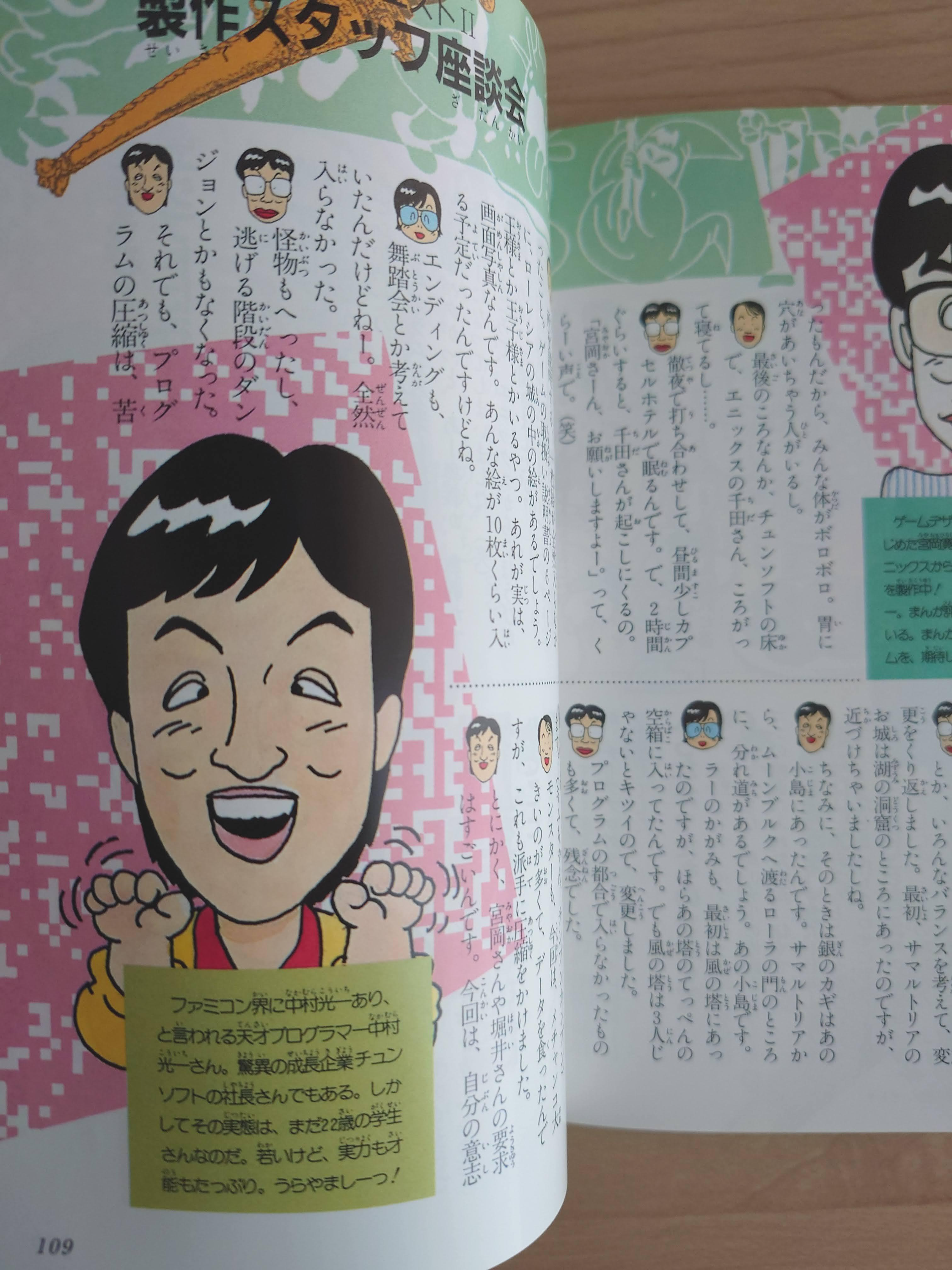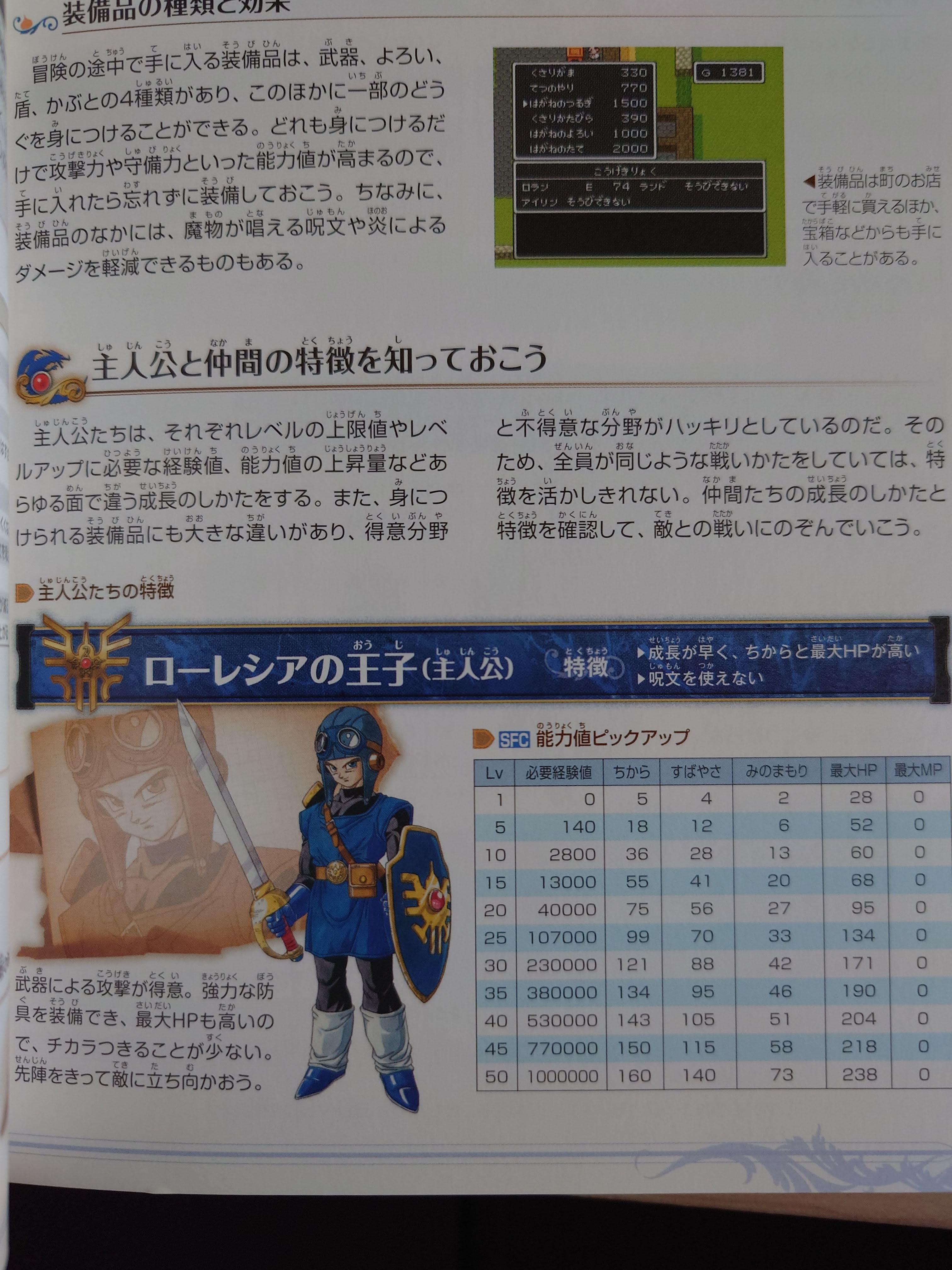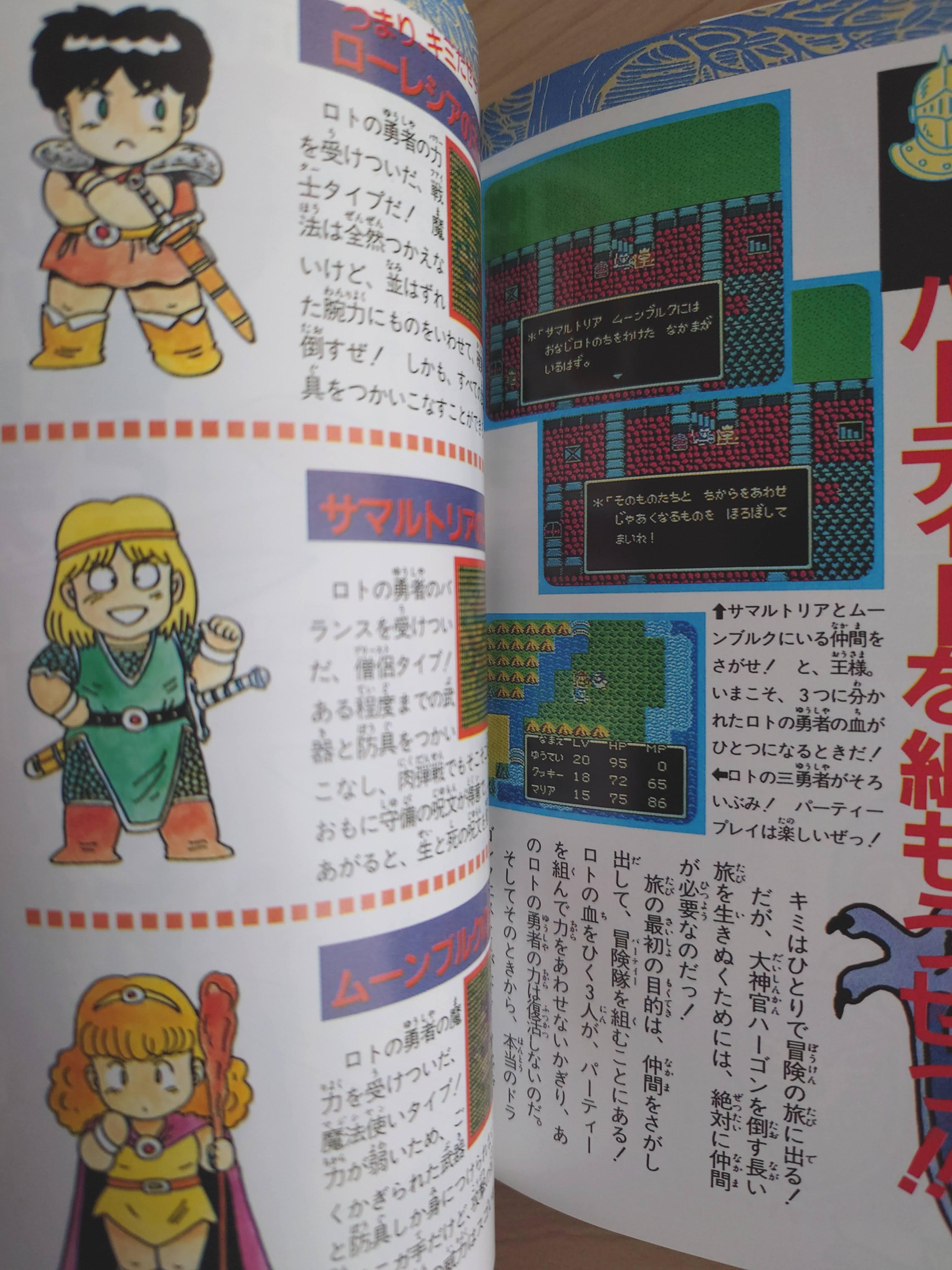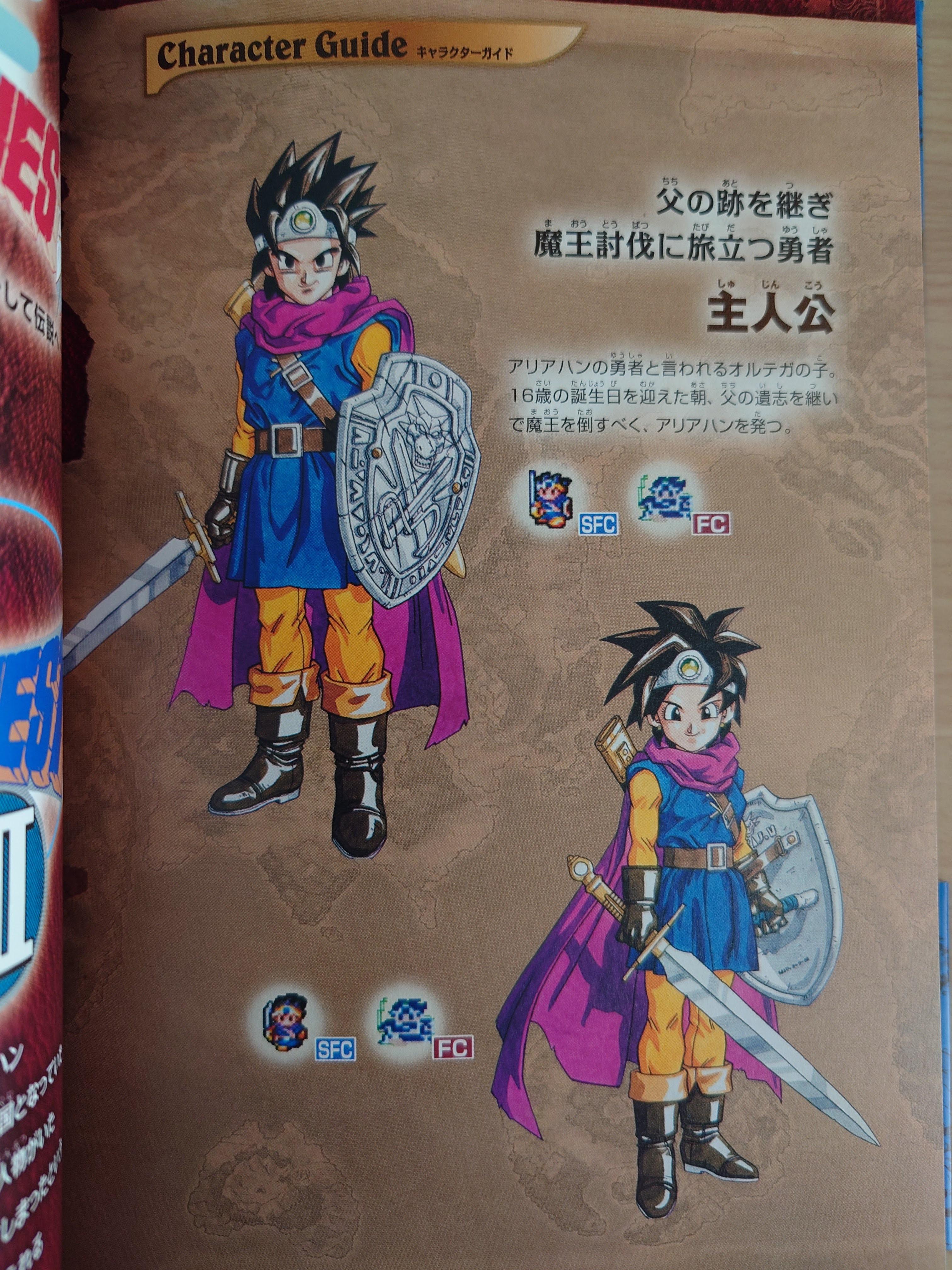 주인공 캐릭터 소개. 일러스트는 슈퍼패미컴판 기준으로 실려있고, 패미컴판과 슈퍼패미컴 판의 도트 캐릭터를 깨알같이 실어놓았다.