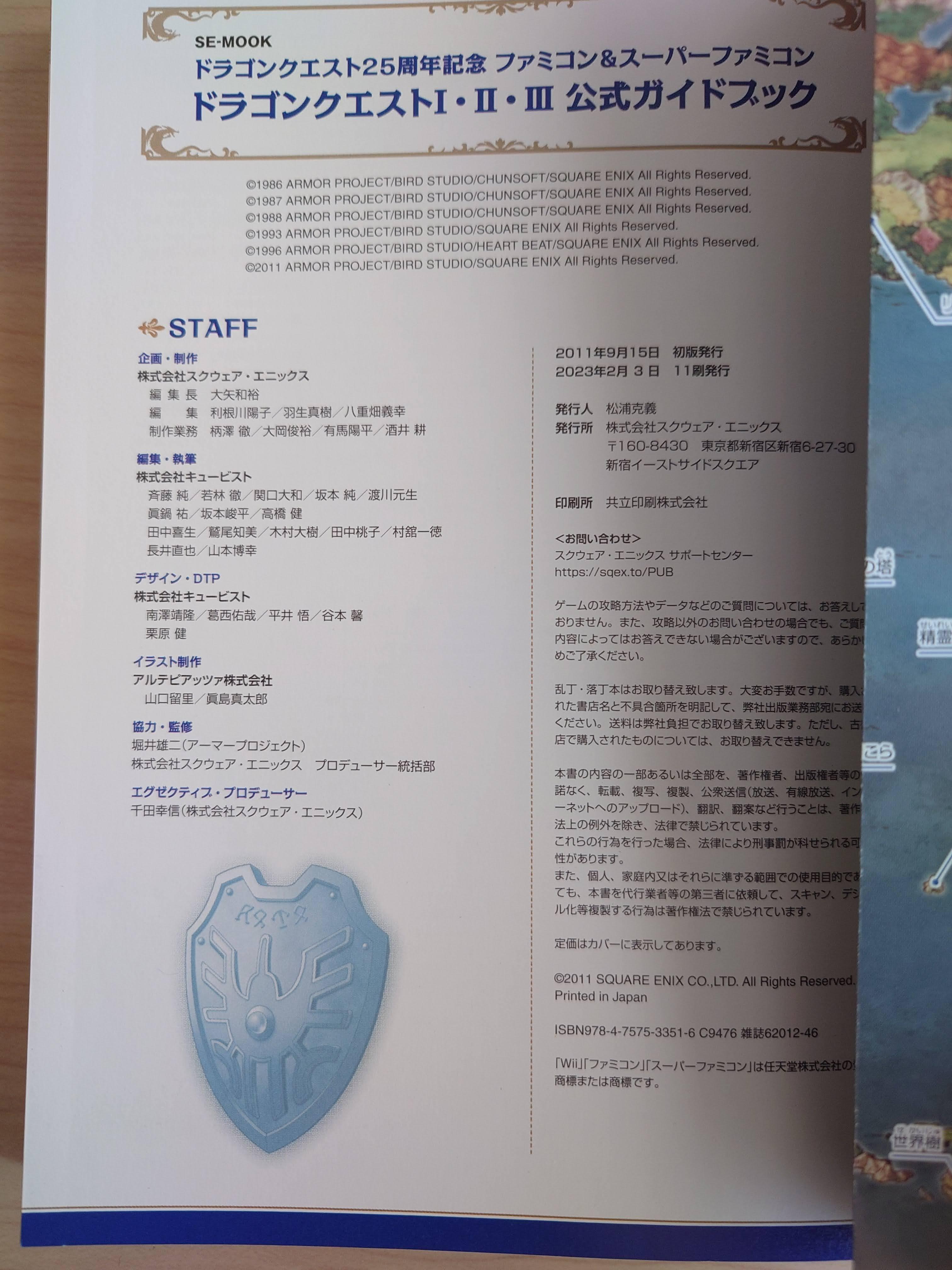 제작스탭. 지금보니 작년 2월에 나온 11쇄였다. 스마트폰과 스위치, PS4등으로도 1,2,3이 나왔지만 마땅한 공략집이 없어 이 쪽이 꾸준히 팔리고 있었나 보다.