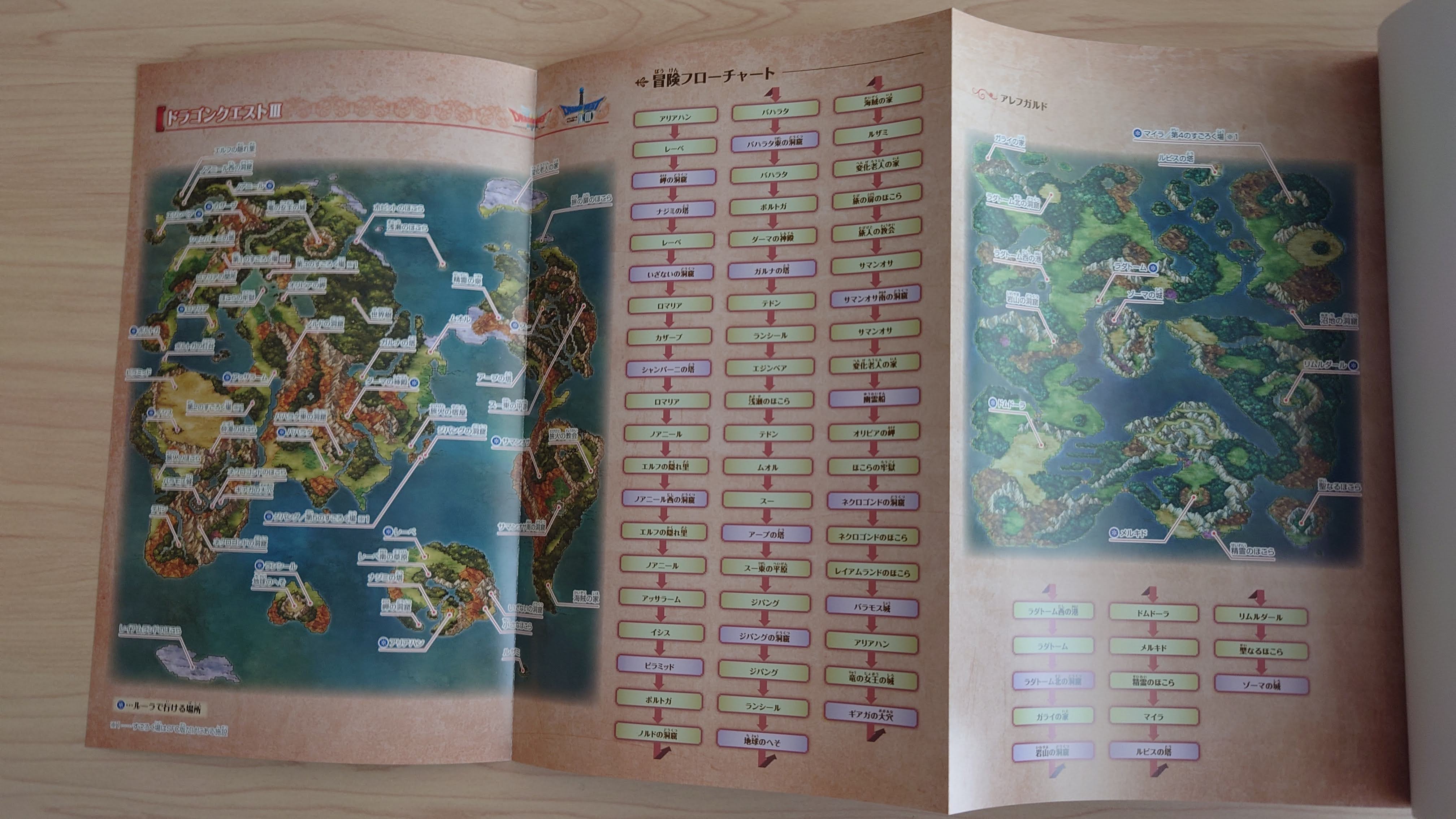 권말부록으로 드래곤퀘스트 1, 2, 3의 세계지도와 간략한 플로우차트가 수록되어 있다. 1과 2를 합친 것보다 3이 더 큰 것만 봐도 드래곤 퀘스트 3의 규모를 느낄 수 있다. 이런 게임이 1년에 한 번 나오던 시절이 있었던 것이다.