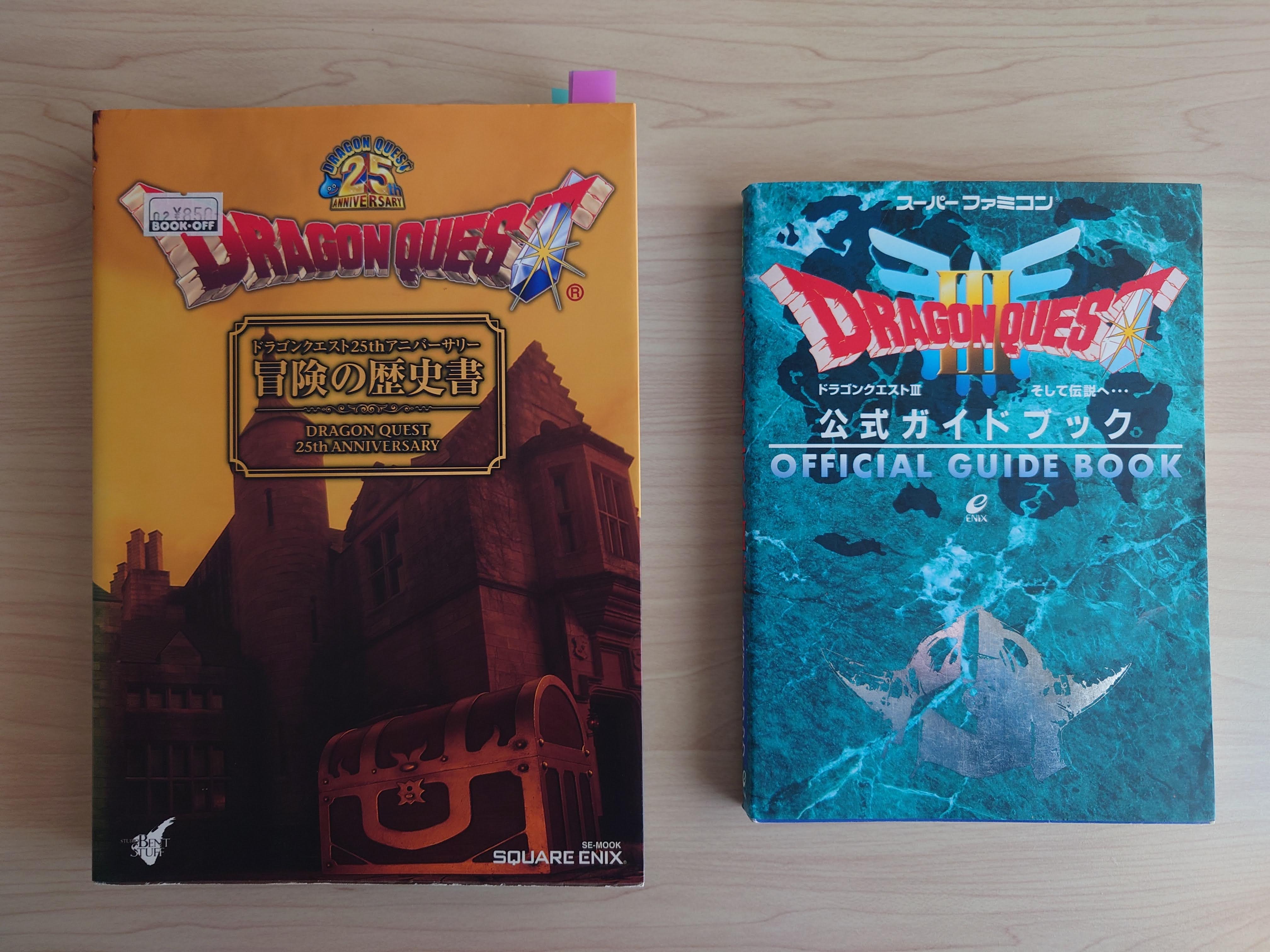 생각보다 책 두께가 상당했다. 드래곤퀘스트 1(초록색), 2(푸른색, 3(붉은색) 으로 각 시리즈의 분량이 판이하게 달라서, 1에서 3까지의 3년간 얼마나 게임이 방대해졌는가를 상대적으로 알 수 있다.