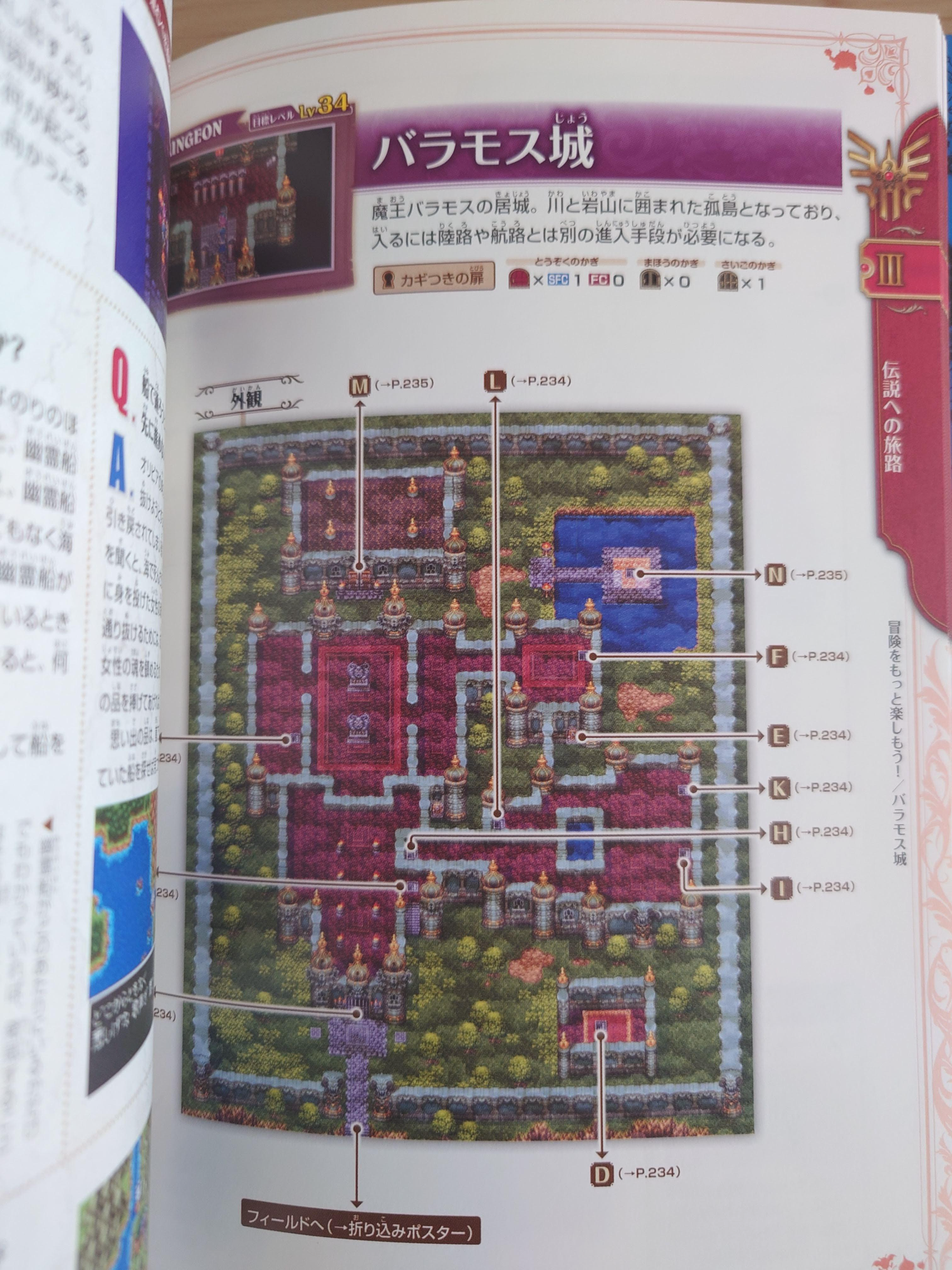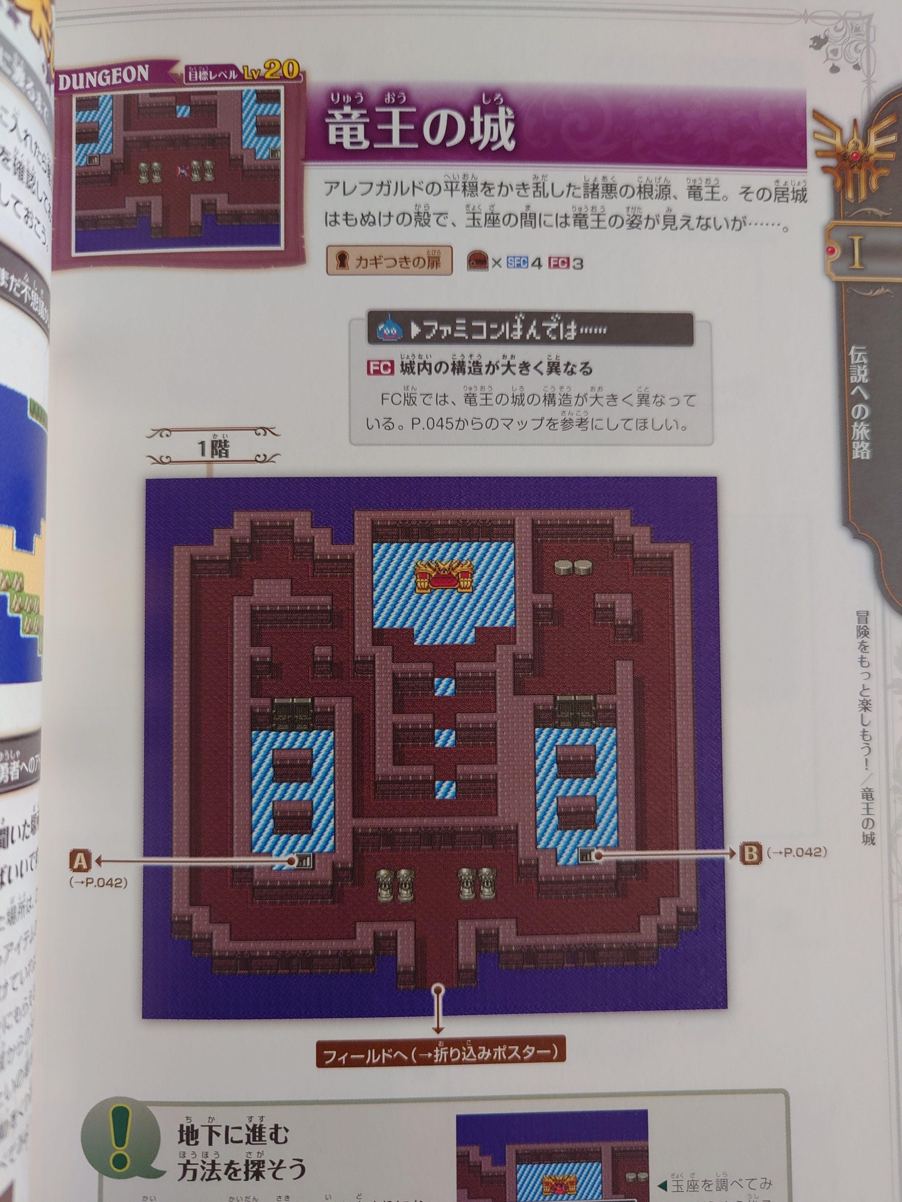 던전 데이터. 이 역시 슈퍼패미컴 판을 베이스로 하고, 패미컴판과의 차이를 메모해놓았다. 용왕의 성은 패미컴판에서 어레인지된 부분이 많아서 패미컴판 지도는 별도로 실어놓고 있다.