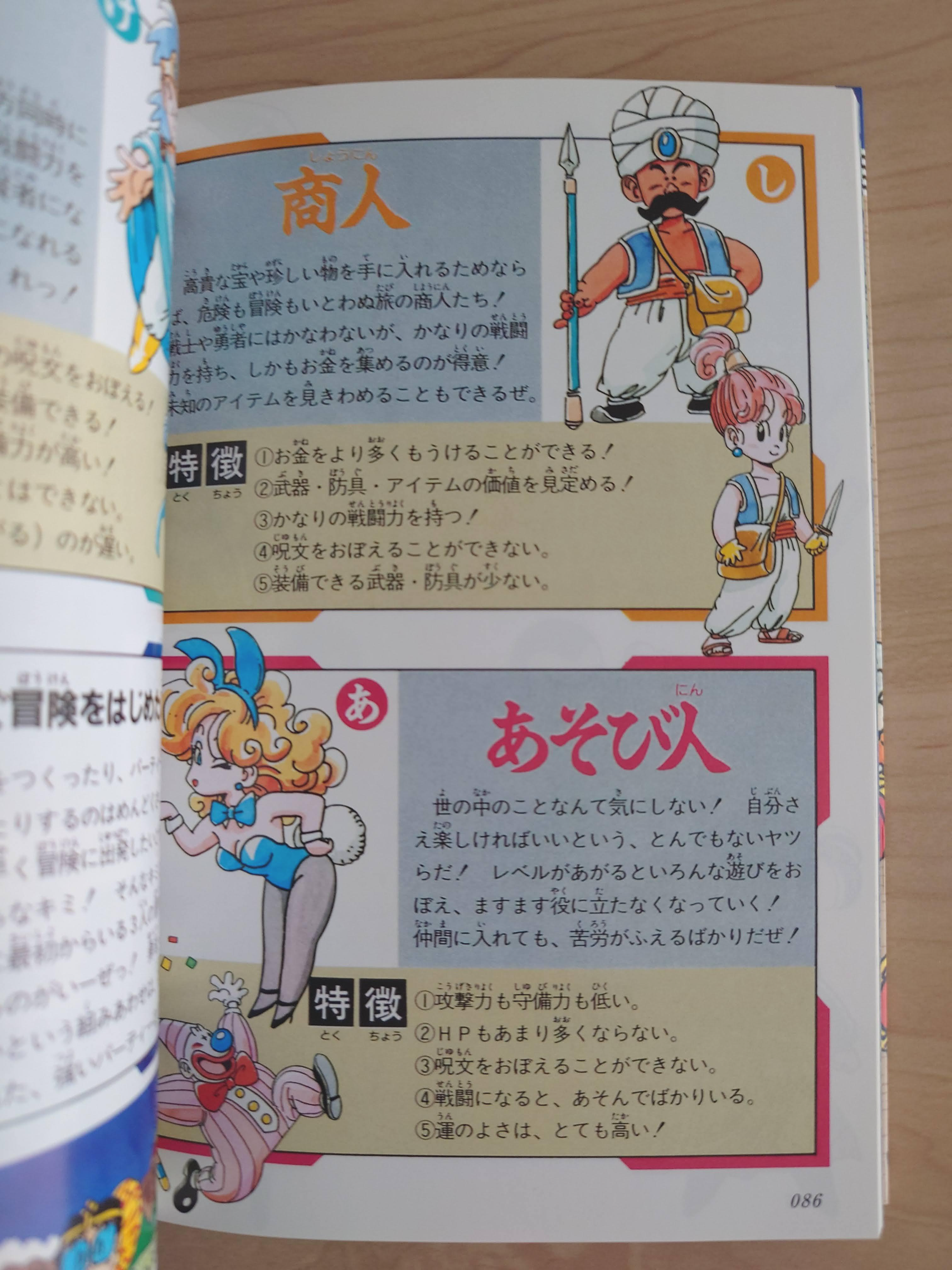 직업 소개. 갖고있는 공략집은 전부 리메이크판 기준 일러스트라 패미컴판의 공식 일러스트인지는 불분명하지만, 터치로 봐서는 공식인 것 같다.