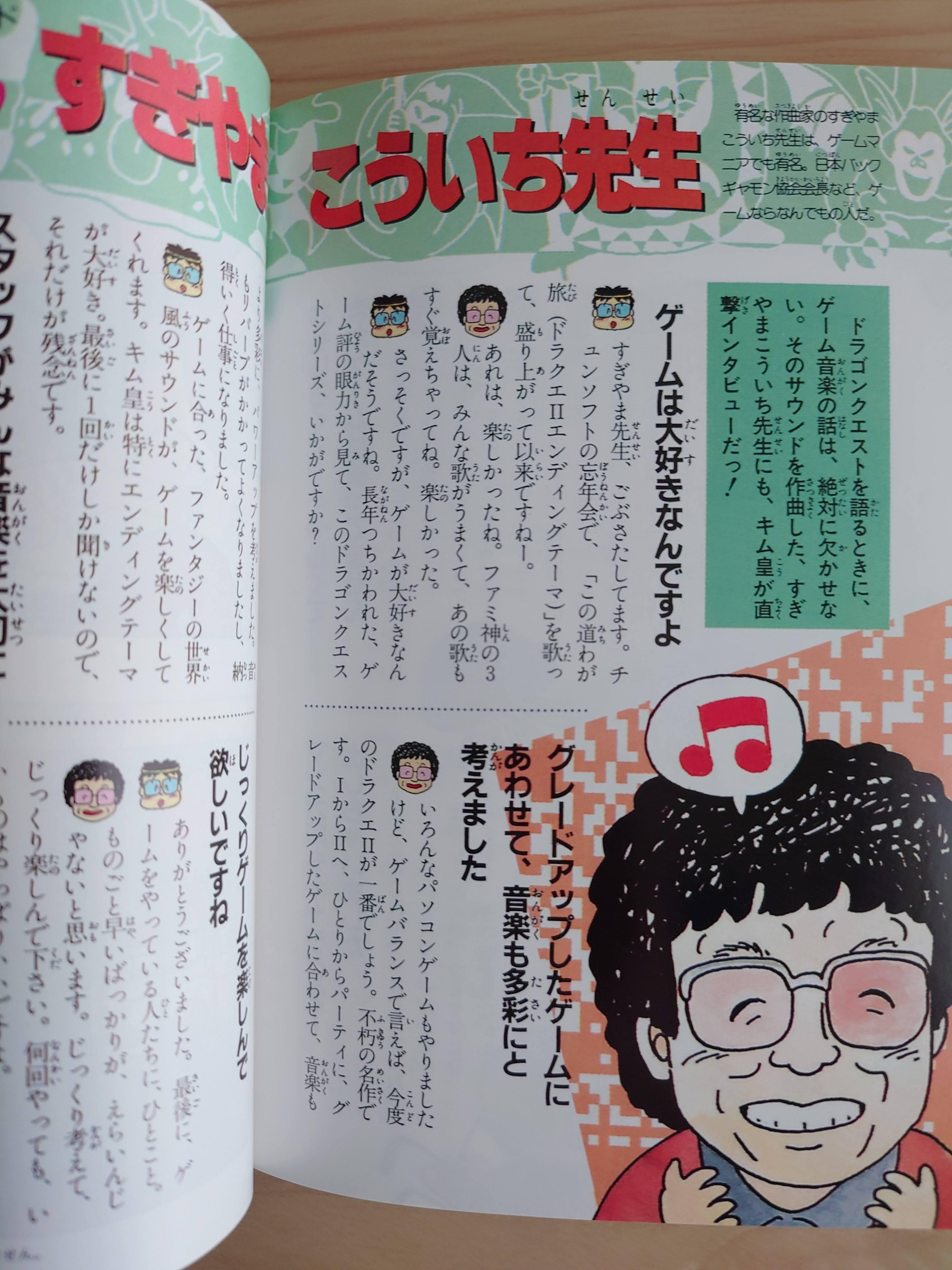 드래곤 퀘스트에서 빼놓을 수 없는 또 한명의 인물, 작곡가 스기야마 코우이치(すぎやま こういち). 특이하게 공식 프로필에 이름을 히라가나로만 쓰고 있었다. 애니메이션 음악에도 여럿 참여해서, 전설거신 이데온의 음악도 담당.