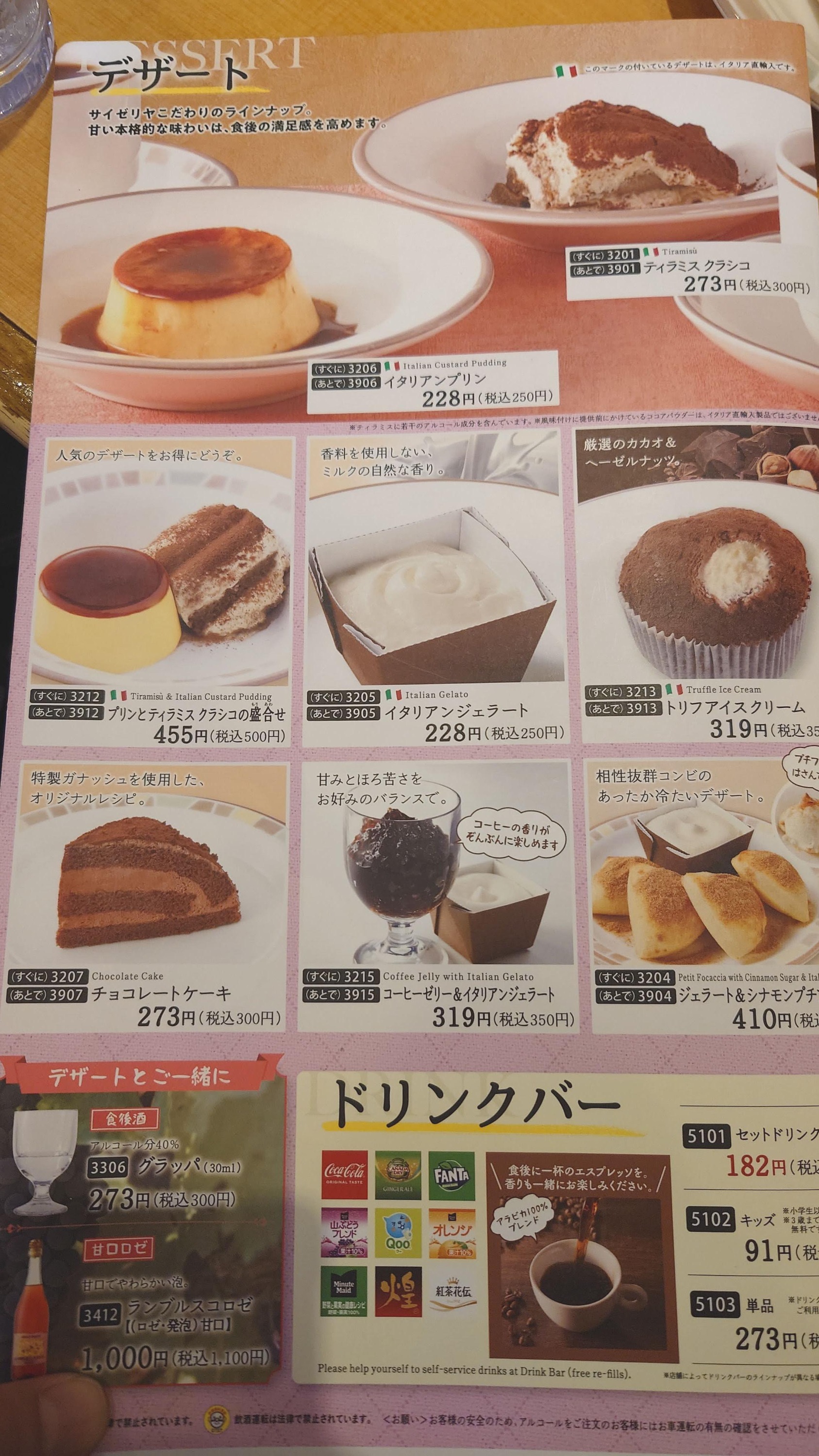 일본여행이라면 모처럼 해외에 나왔는데 이런 저렴한 식사는 하지 않겠지만, 혹시라도 턴이 한 번 빈다면 사이제리야에 가 볼 것을 추천한다. 500ml 데칸타 와인(400엔)과 함께.