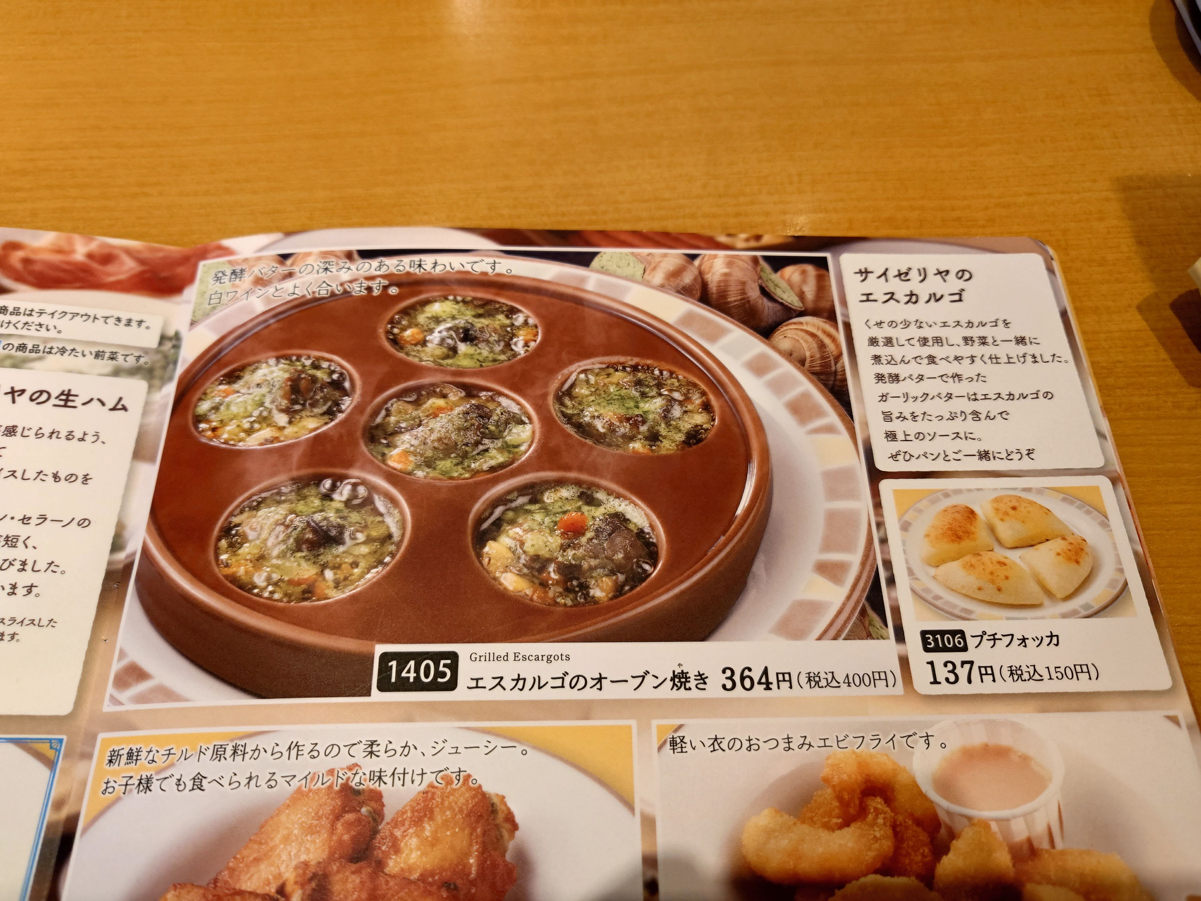 에스까르고 오븐 구이(400엔). 항상 '이거 뭘로 만든거지?' 하며 먹지만 맛있다.