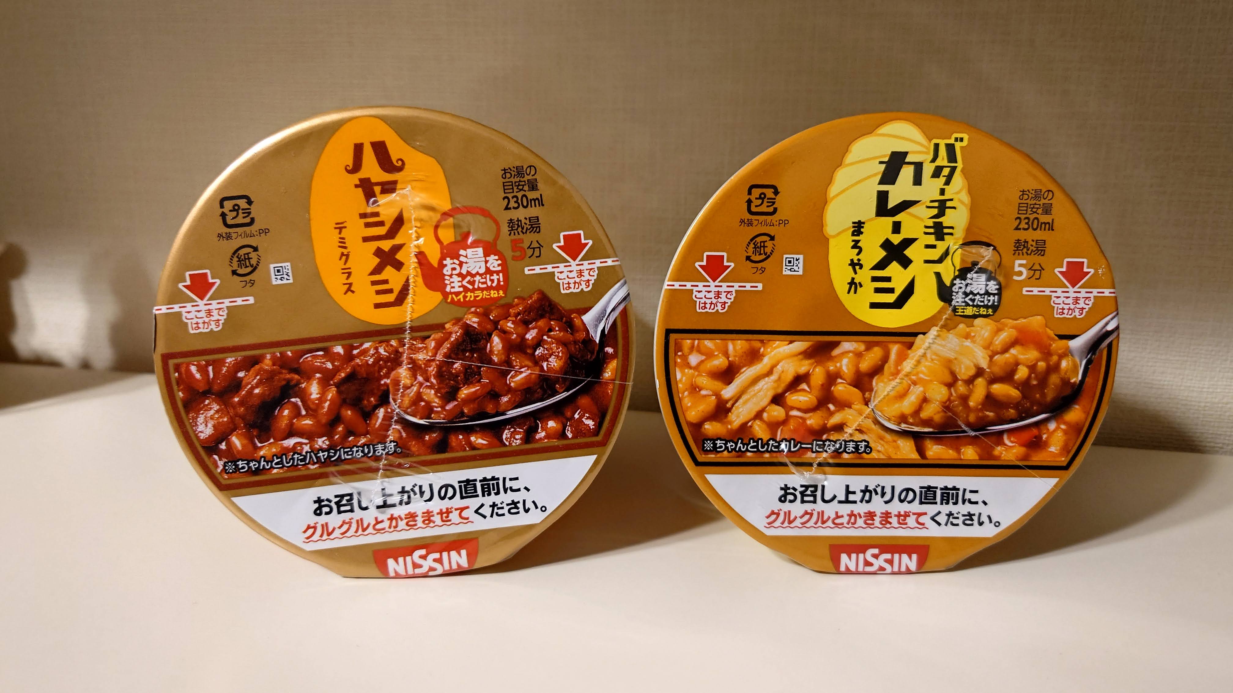 며칠 전 포스팅한 완전메시 야키소바 U.F.O.가 너무 실망스러웠던 탓에, 그 모체가 된 완전메시 카레메시가 어땠는지 리뷰해보고자 카레메시와 하야시메시를 보자마자 급히 사들고 왔더랬다.